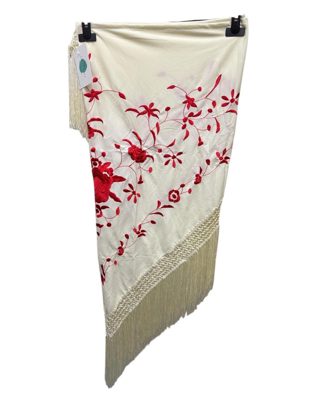 MANTON BORDADO AL TONO BEIG Y ROJO