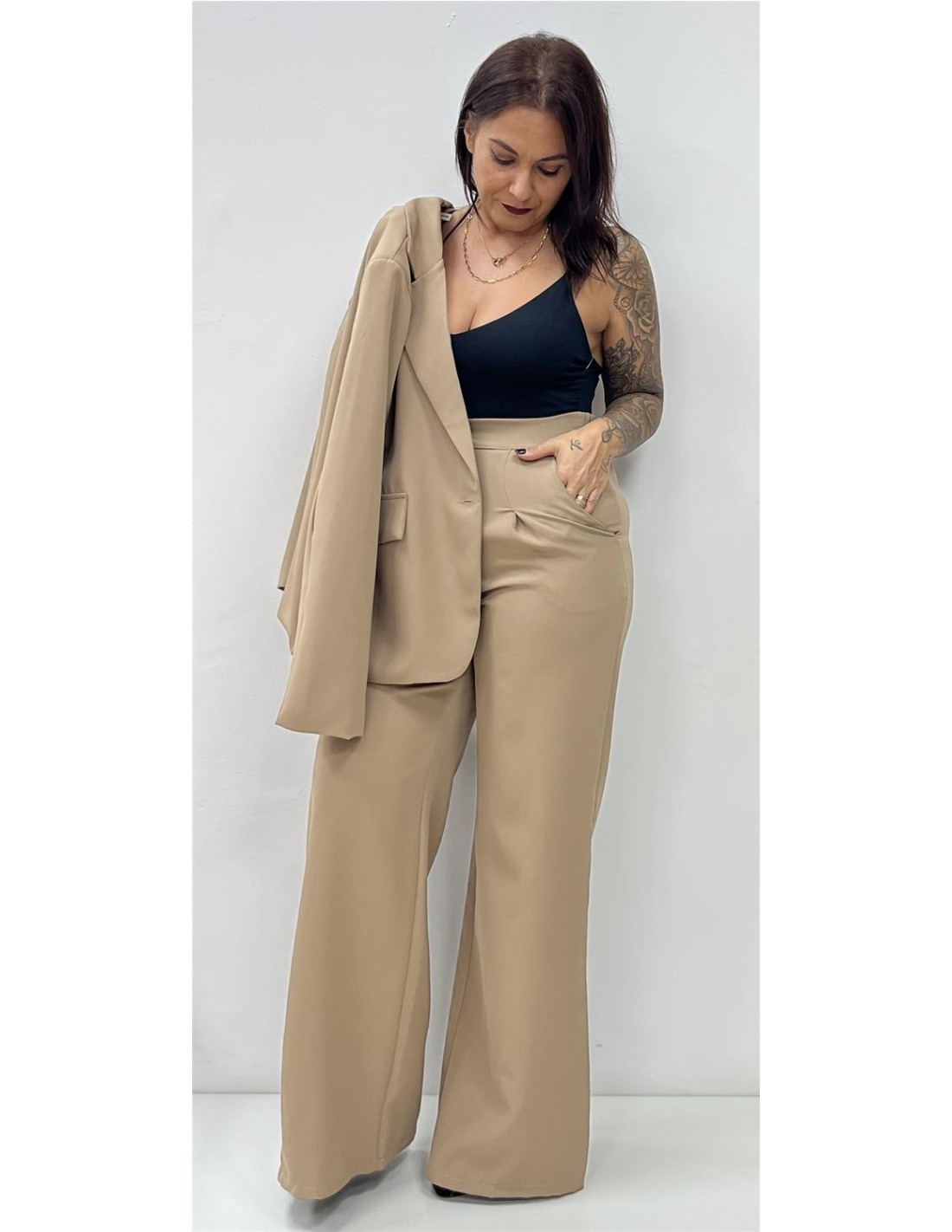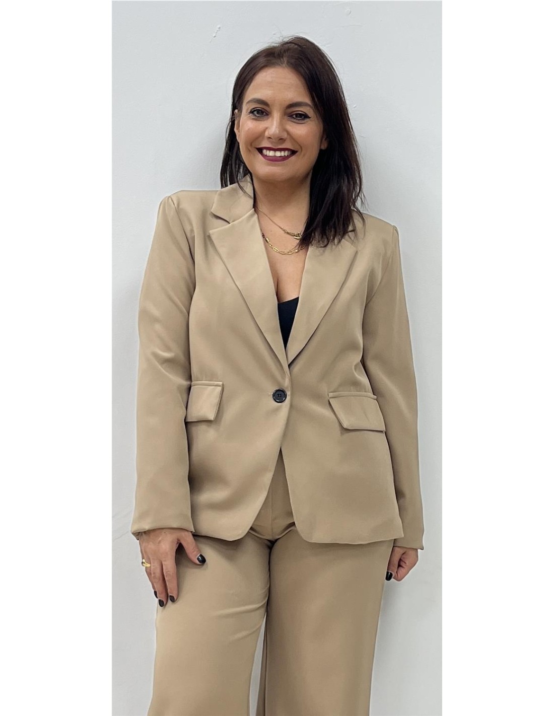 Chaqueta con un botón. Su talla puede dar desde una 36 hasta una 40. Combinada con el pantalón AFRICA
