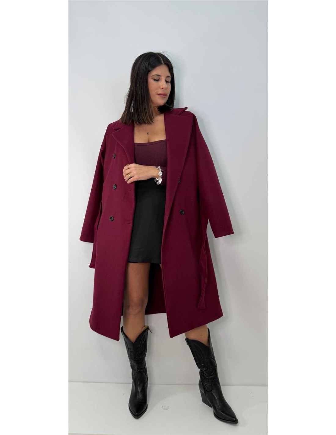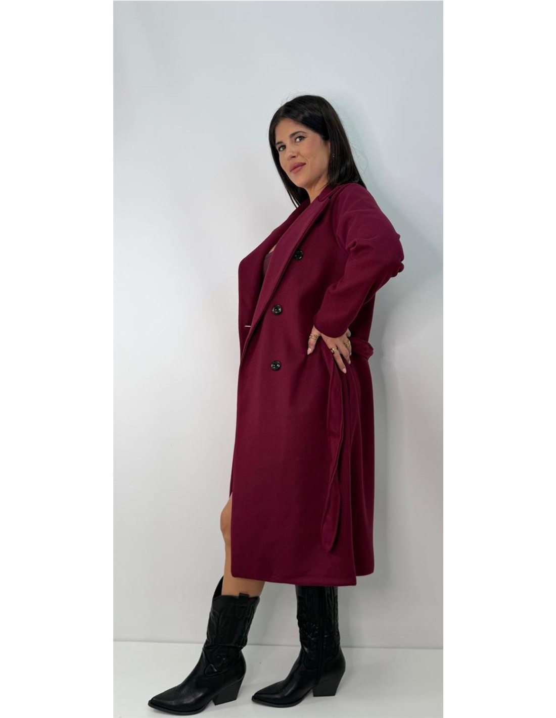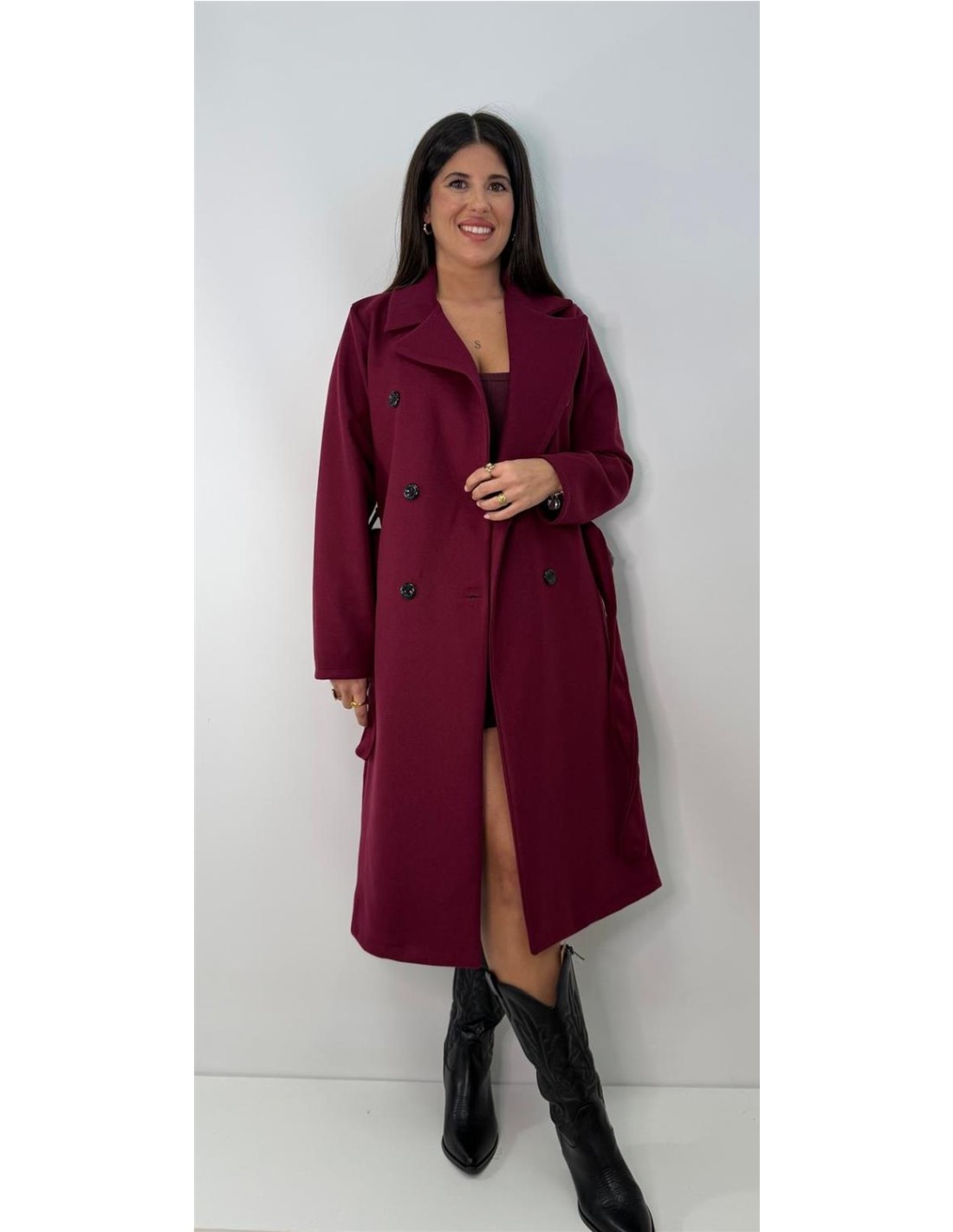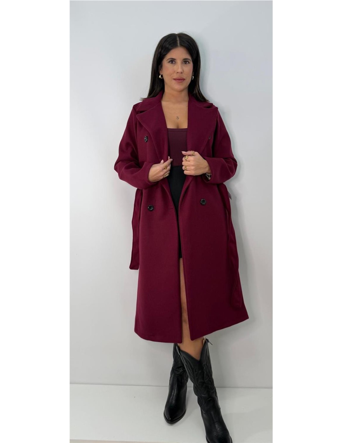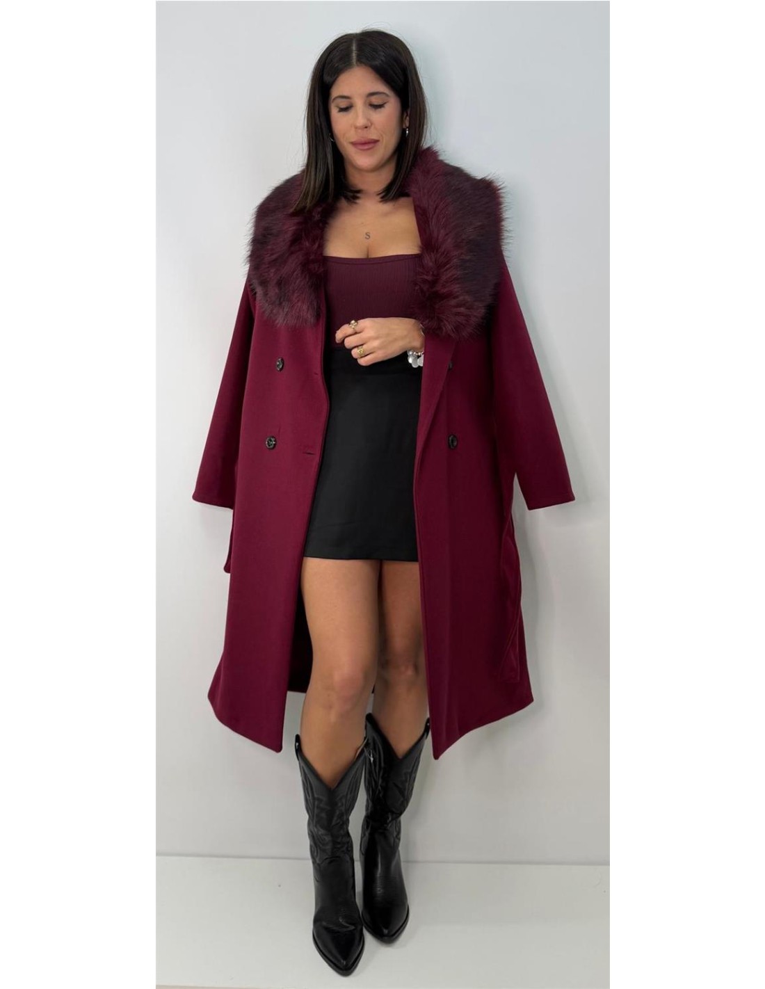 Abrigo de paño y botones en color negro, bolsillos y cinturon de paño, no inclulle cuello de pelos. Talla unica 34 a 42 aprox