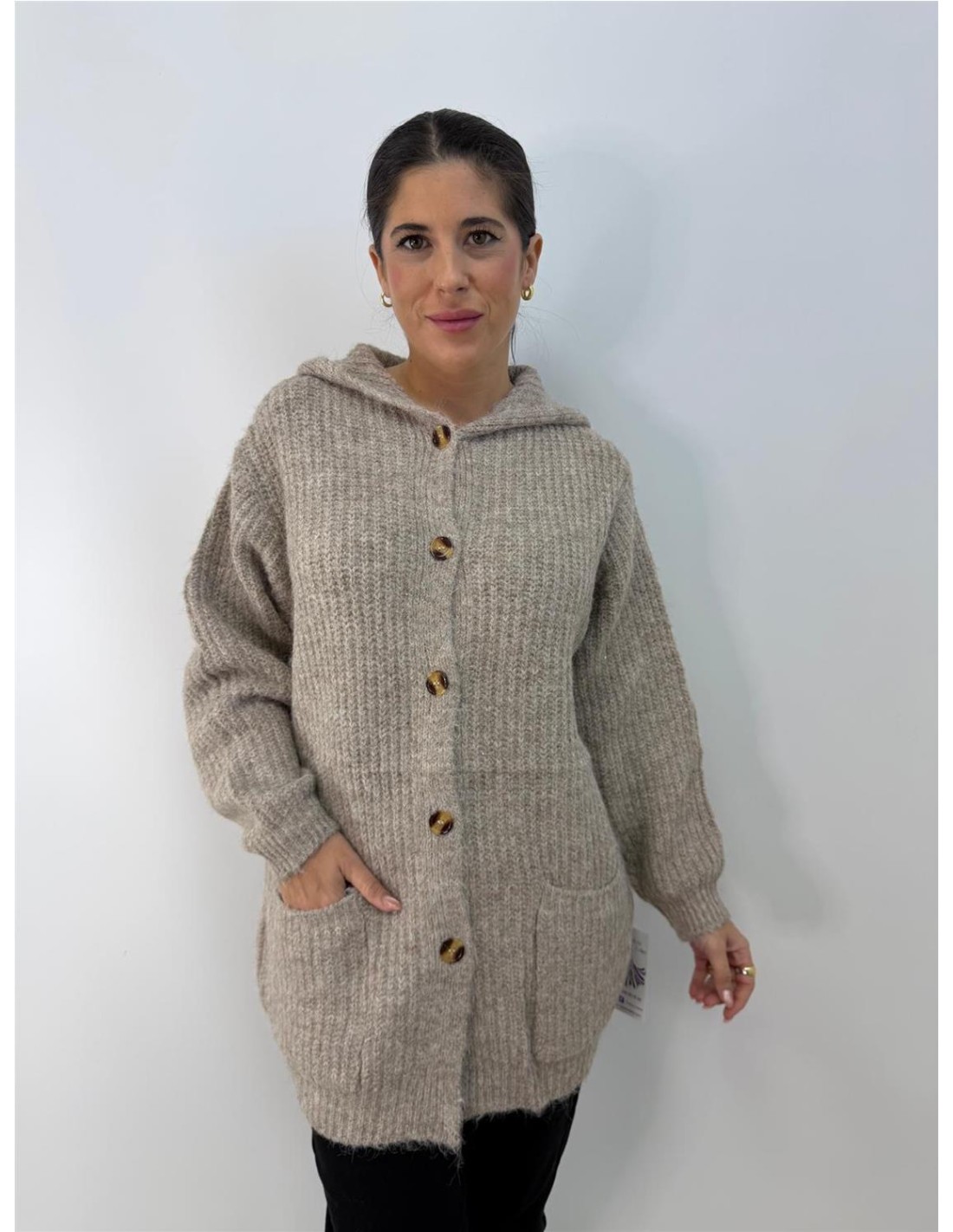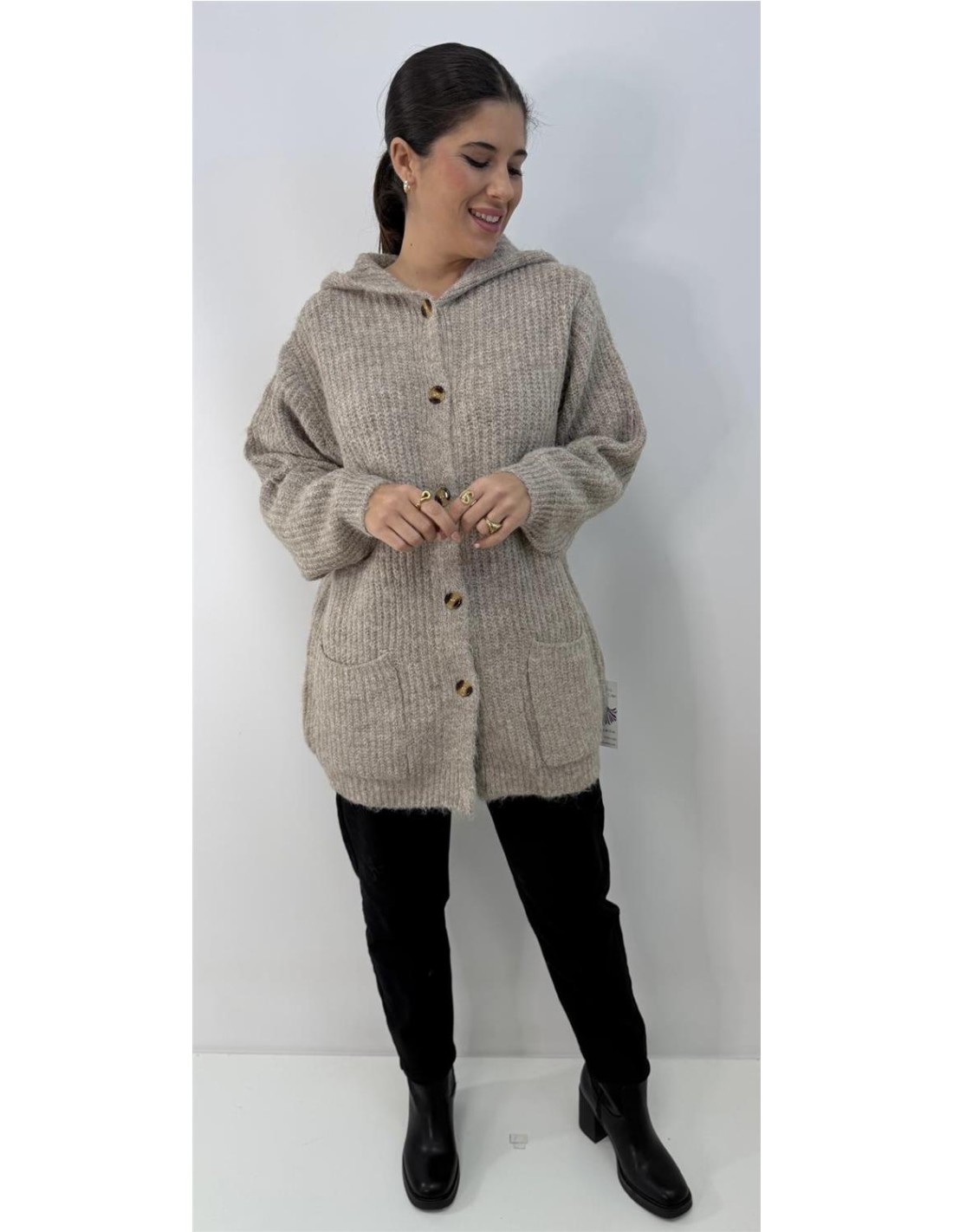 Rebeca de lana abotonada con gorro. Talla unica 36 a 4 aprox