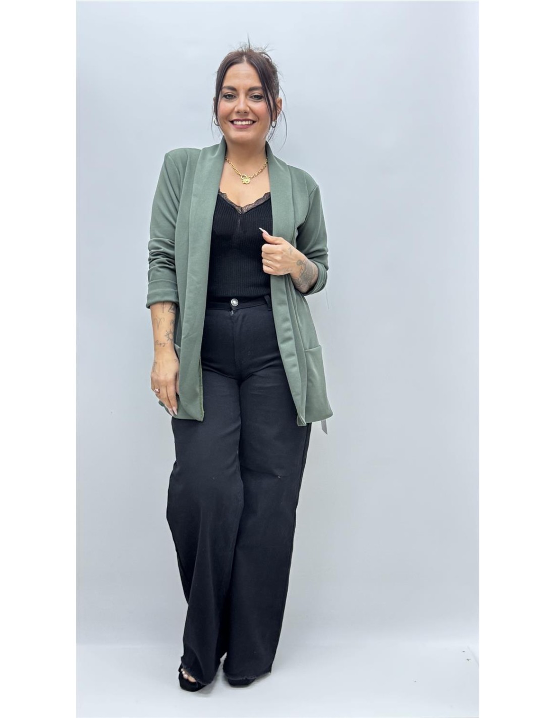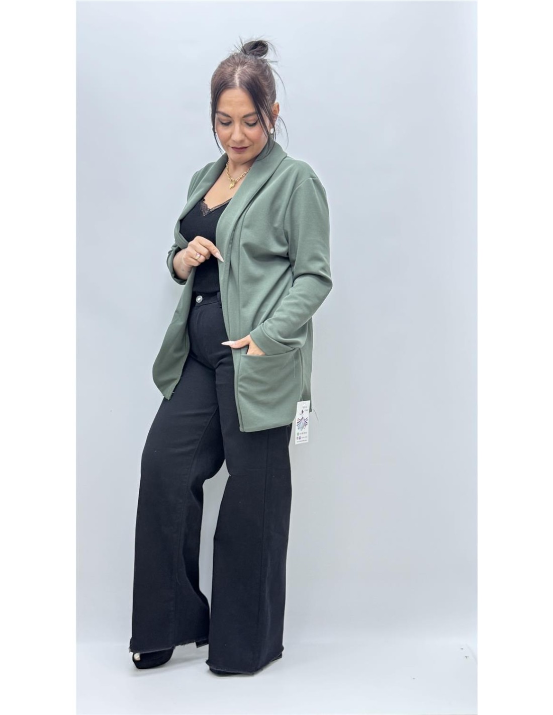 Blazer de punto con bolsillos y detalle de vuelta en la manga, es de talla unica dando aprox desde la 38 hasta la 44.