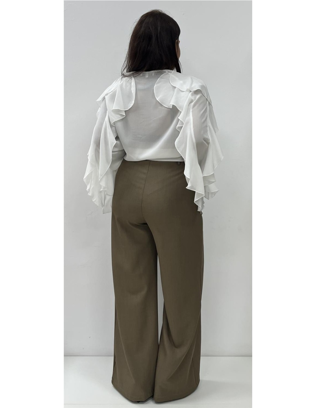 Camisa de gasa con volantes. Su talla puede dar desde una 40 hasta una 44. Combinada con el pantalón CANTABRIA