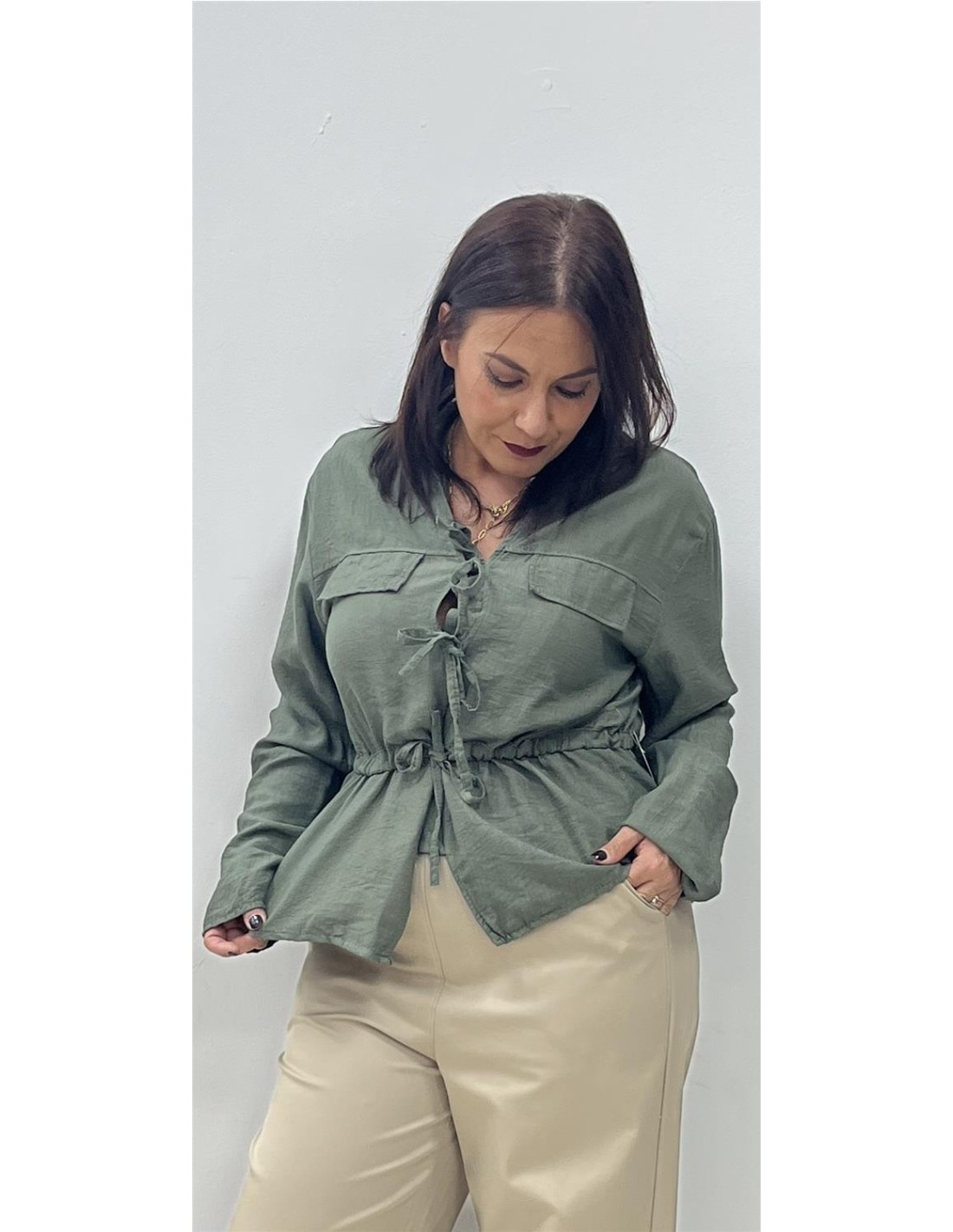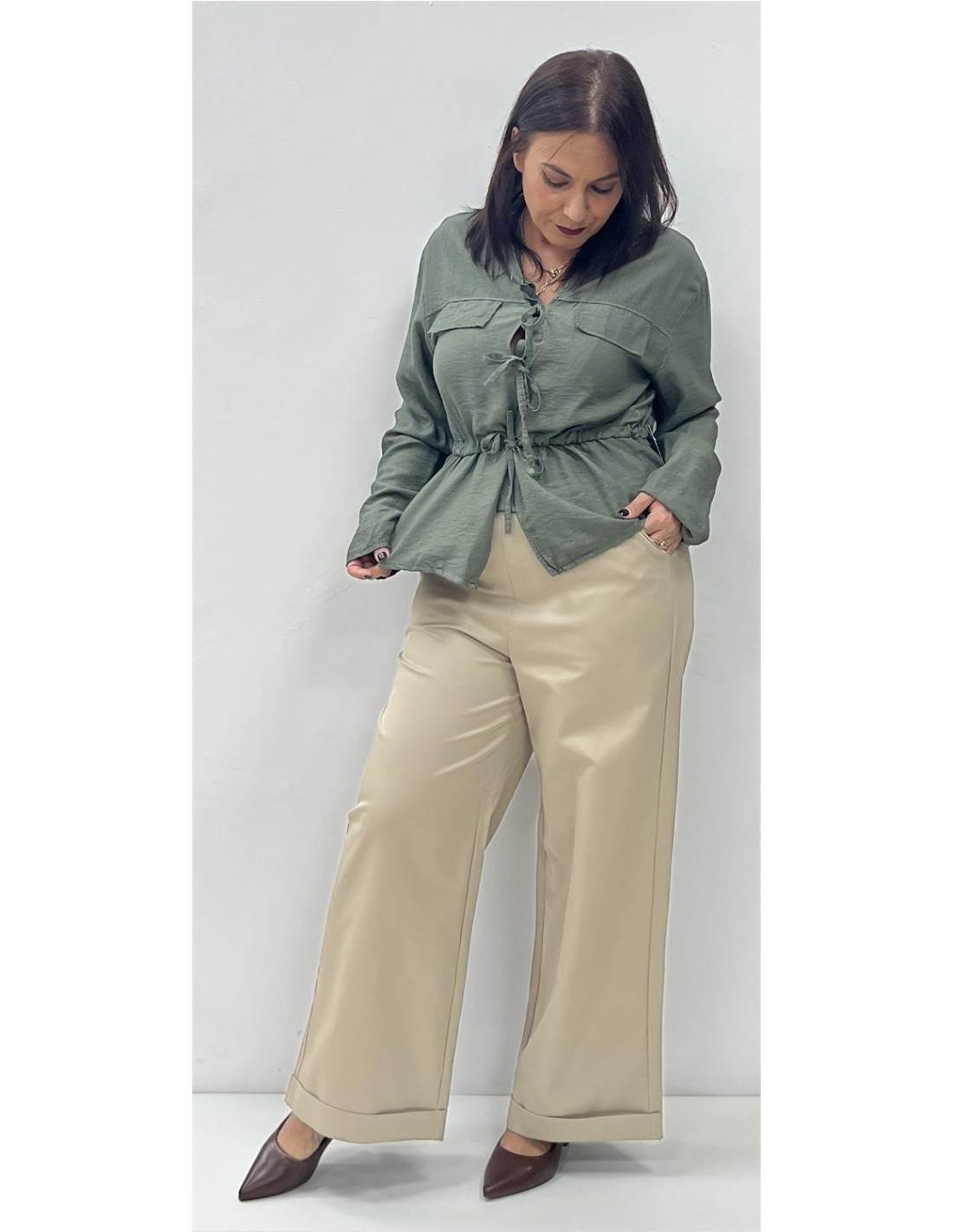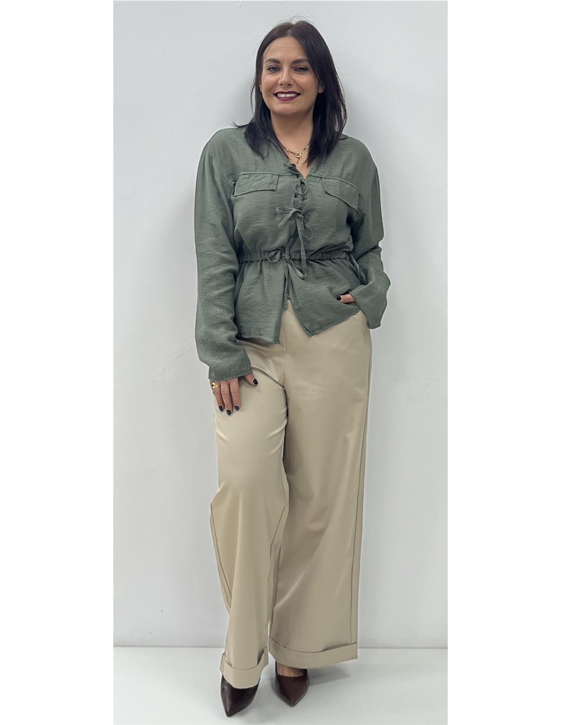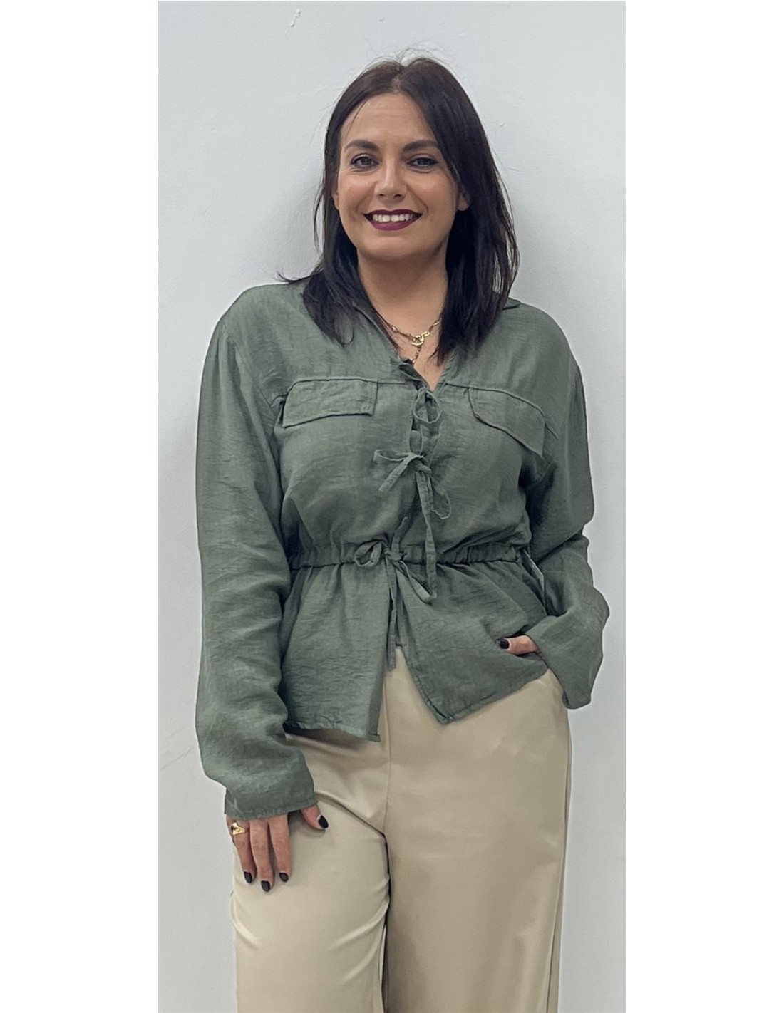Camisa con nudos manga larga. Su talla puede dar desde una 36 hasta una 42. Combinada con el pantalón ALICANTE y el tacón TC258