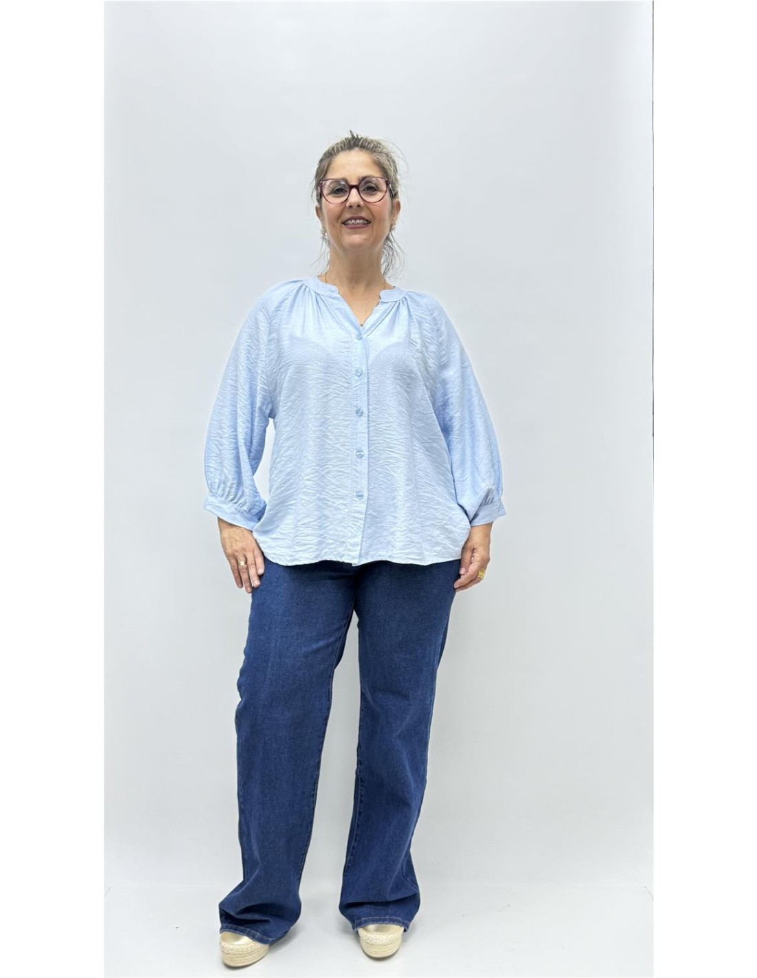 Camisa abotonada con mangs largas. Talla única desde una 36 hasta una 44 aproximadamente.