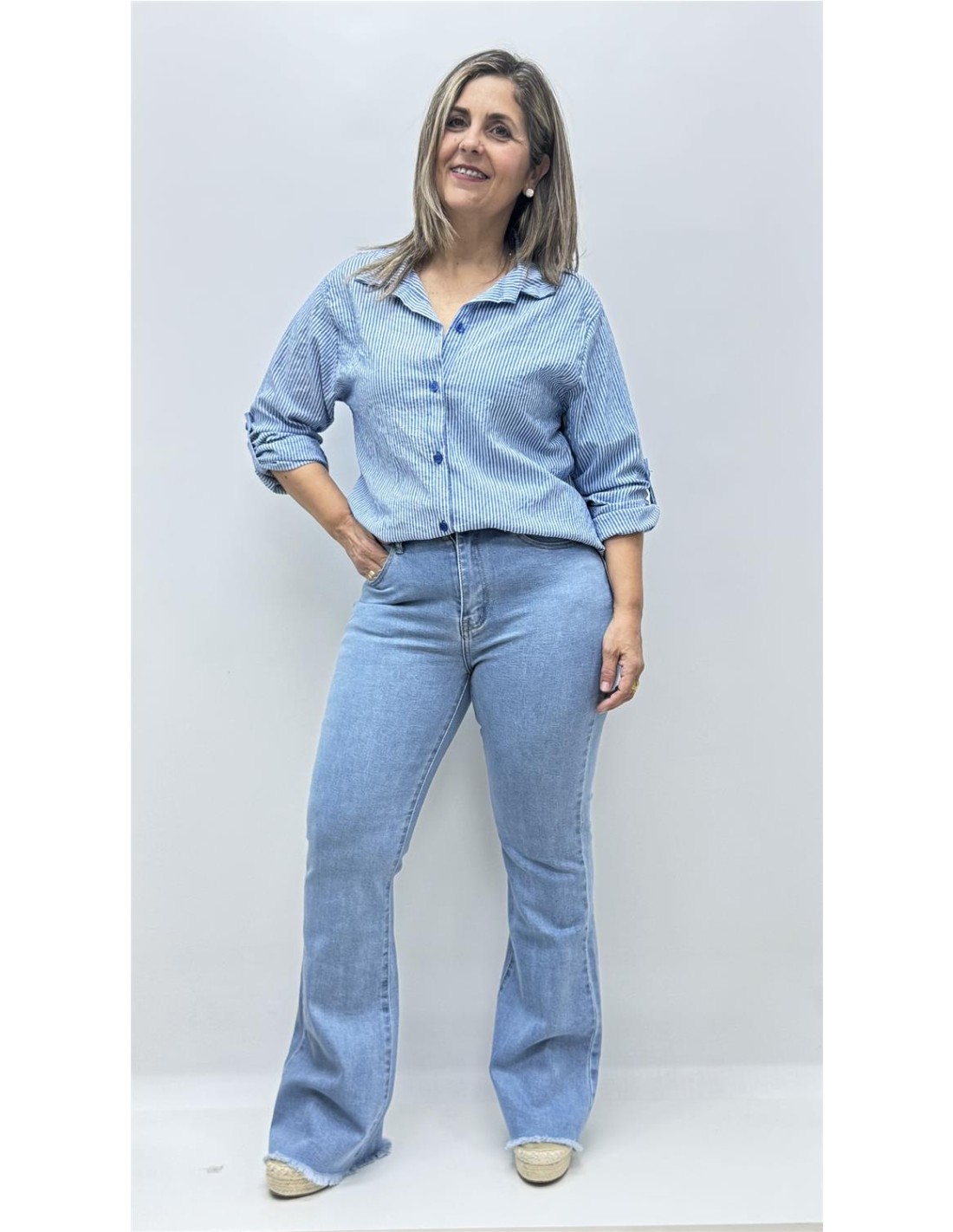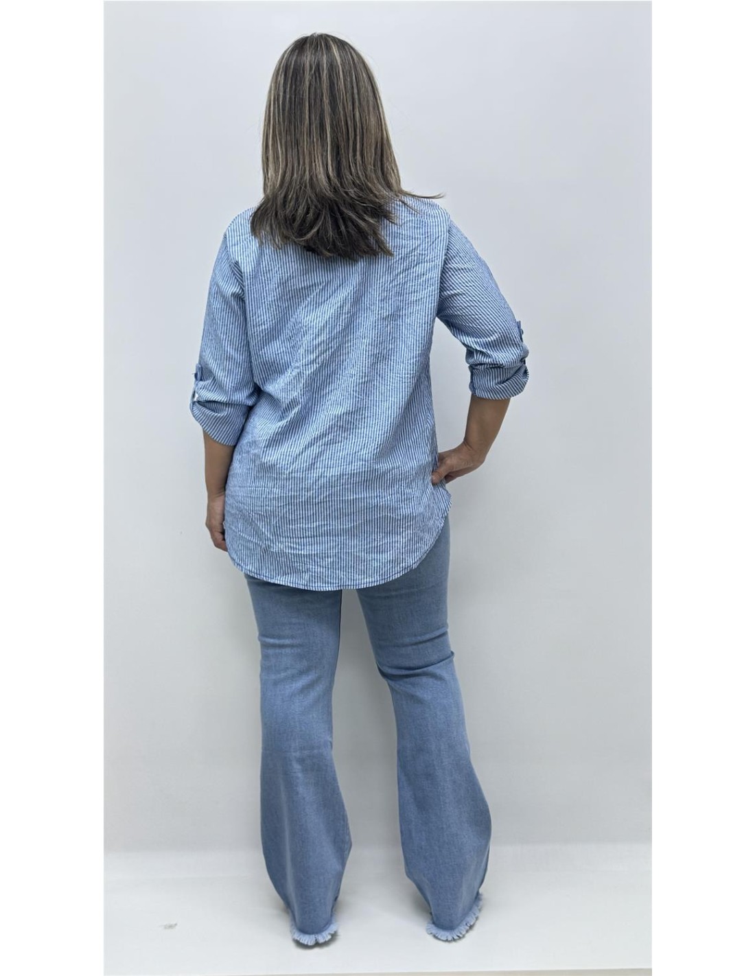 Camisa de rayas de manga larga, con boton para recoger la manga, es de talla unica dando aprox.36 hasta la 42.