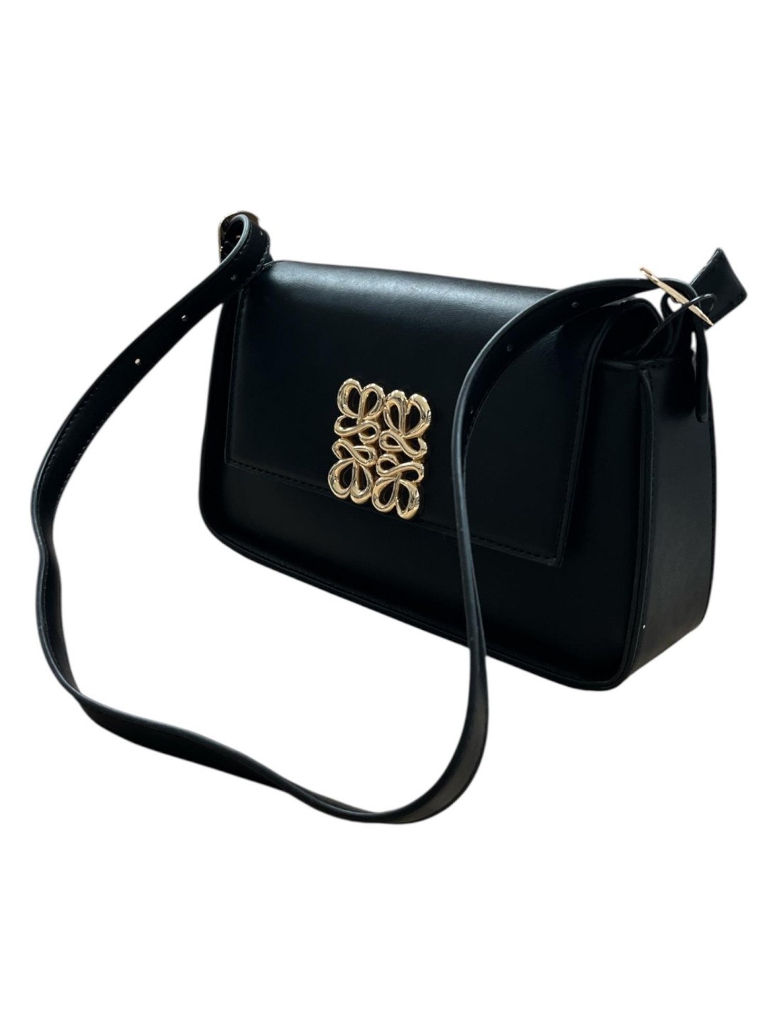 Bolso rígido con broche dorado. Medidas: 27 cm de ancho por 15 cm de alto