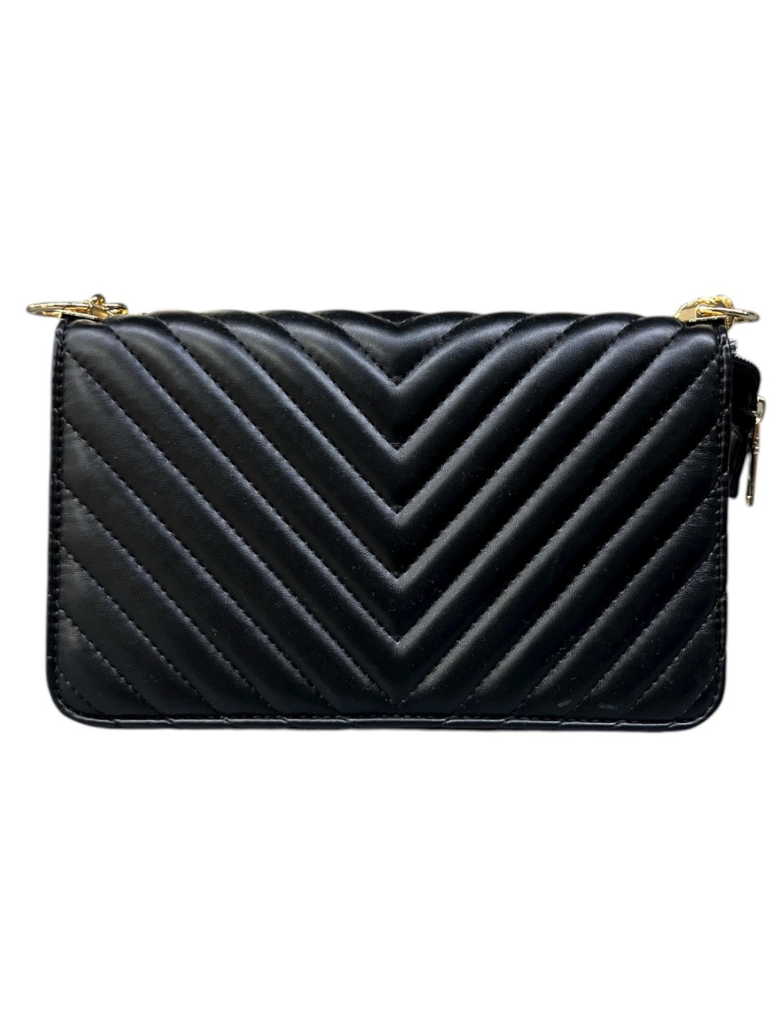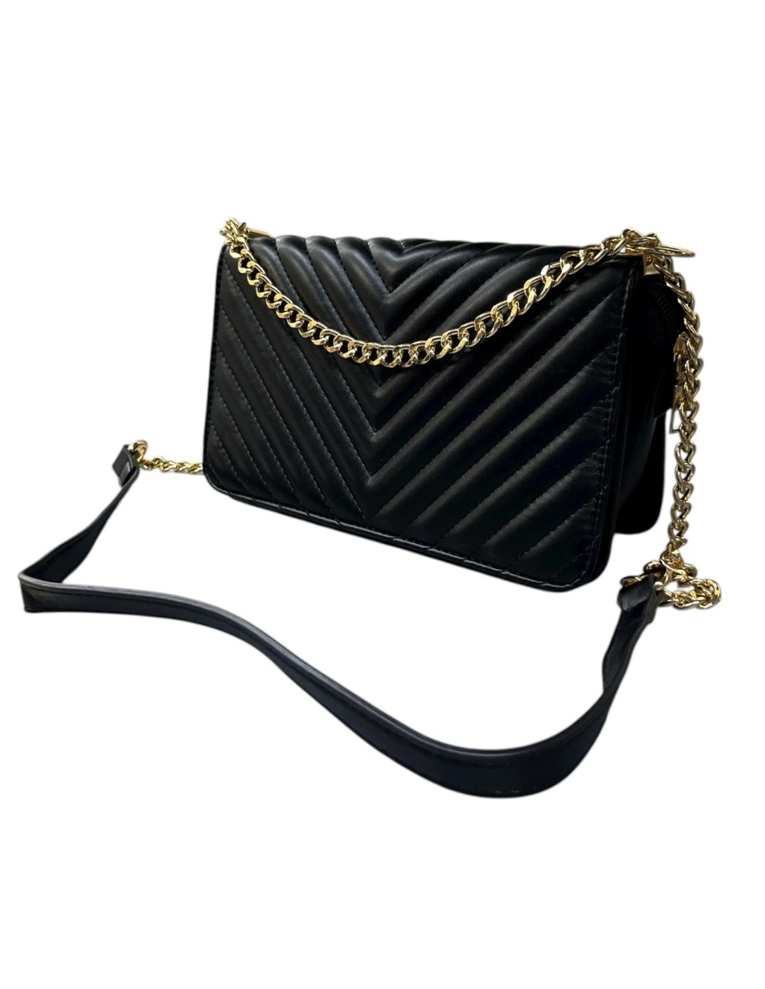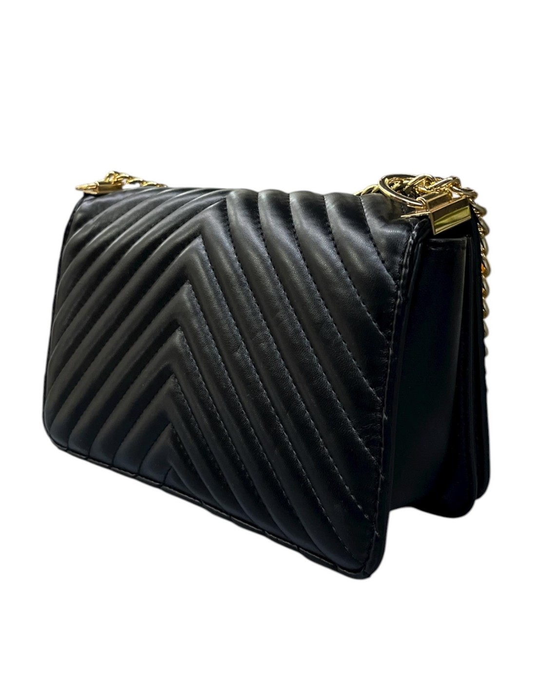 Bolso rígido de napa con bandolera. Medidas: 23 cm de ancho por 14 cm de alto