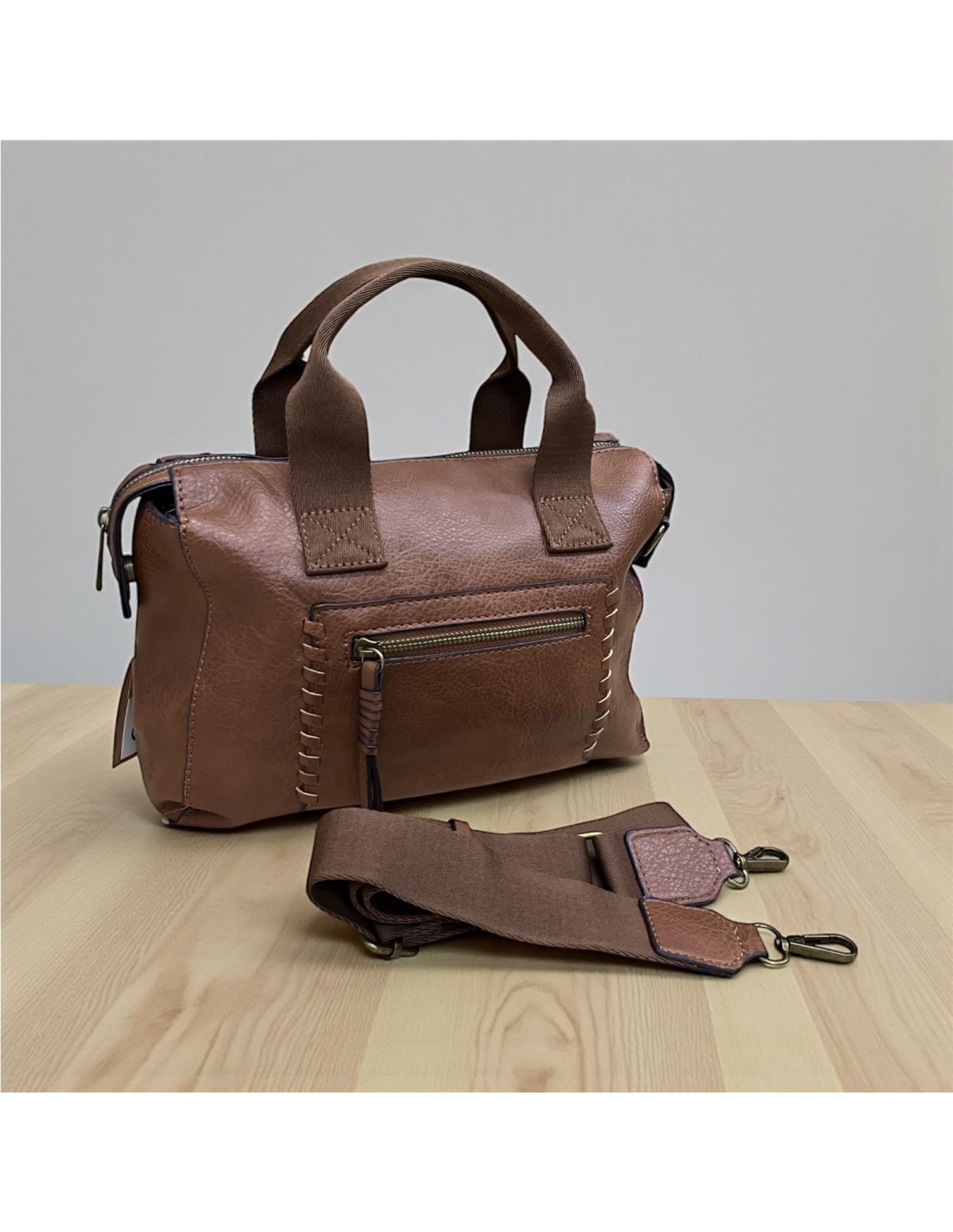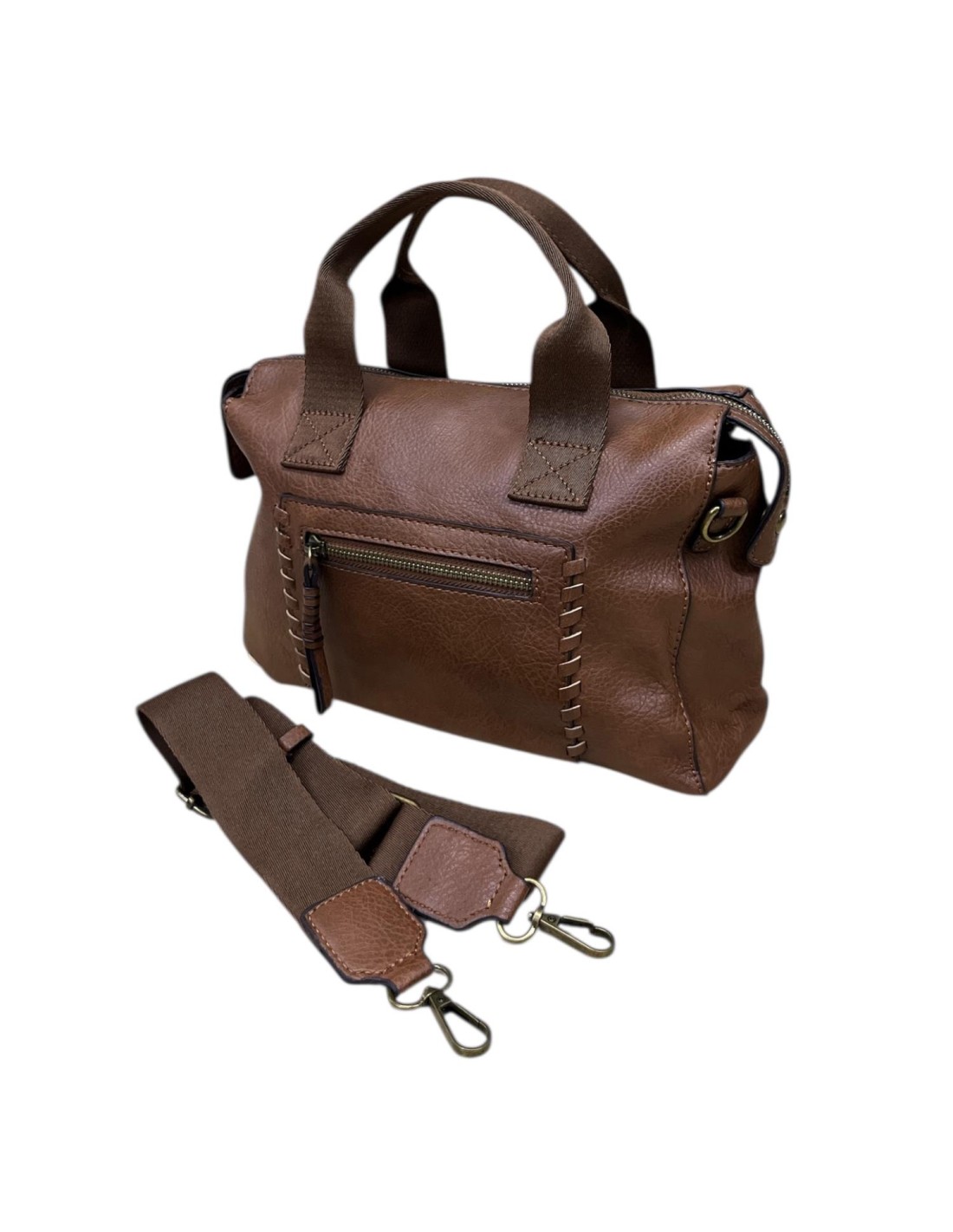 Bolso de cuero, con cremalleras, asa larga ancha.