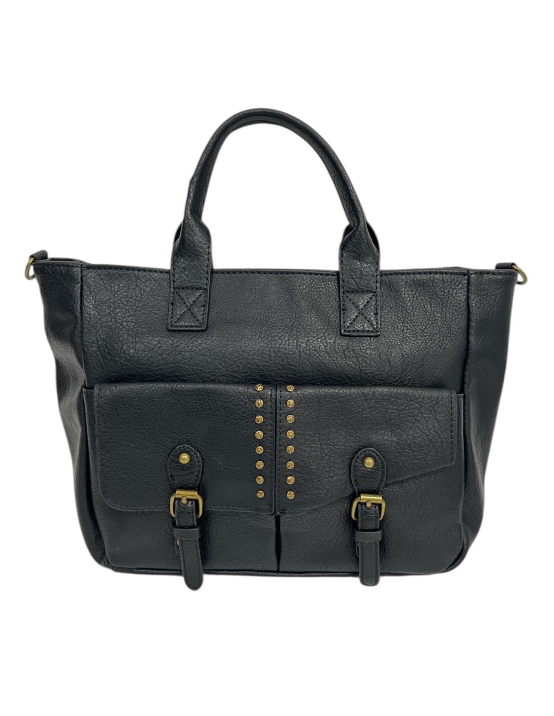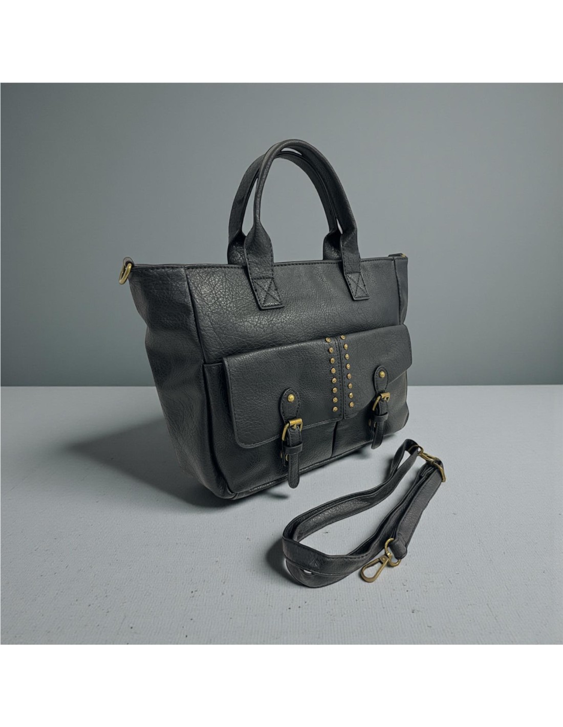 Bolso de napa con solapa con dos hebillas. Medidas: 30 cm de ancho por 25 cm de alto