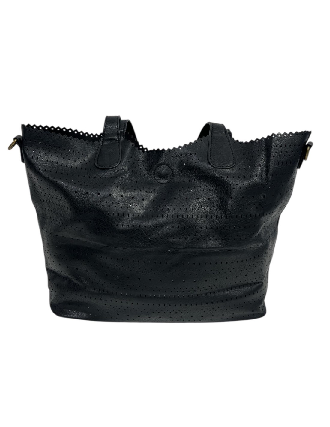 Bolso grande de napa troquelado. Medidas: 34 cm de ancho por 30 cm de alto
