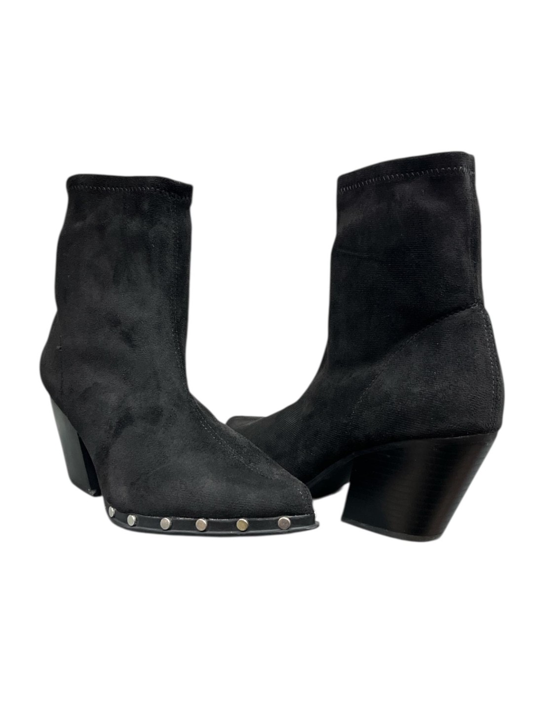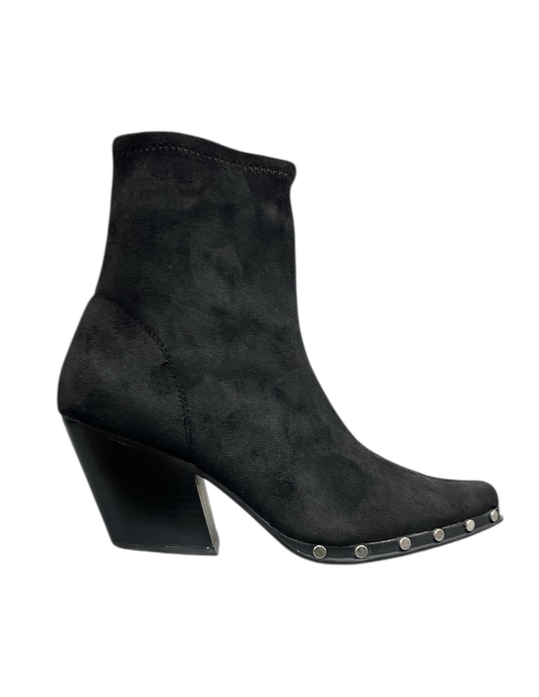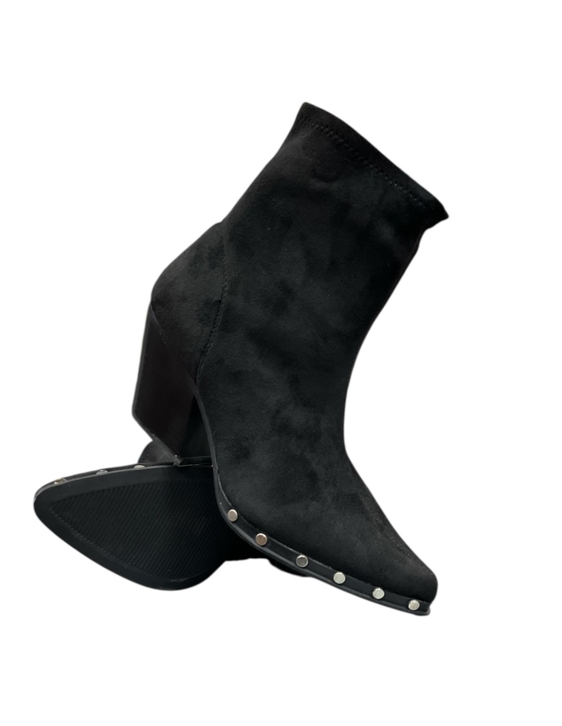 Botín de serraje con tachuelas en la suela. Tacón de 6 cm y altura de 20 cm