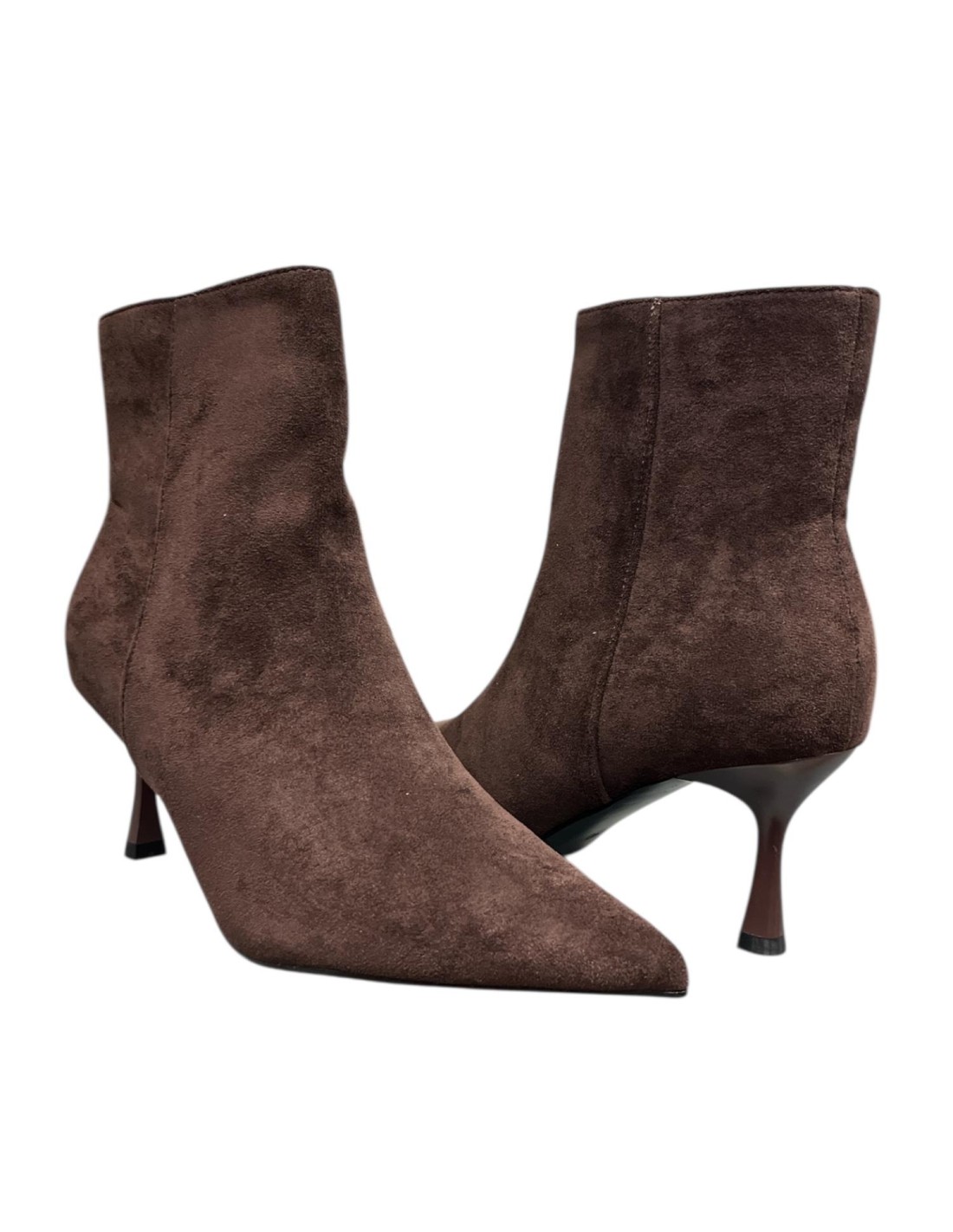 Botín de serraje con tacón fino de 7 cm y altura de 20 cm