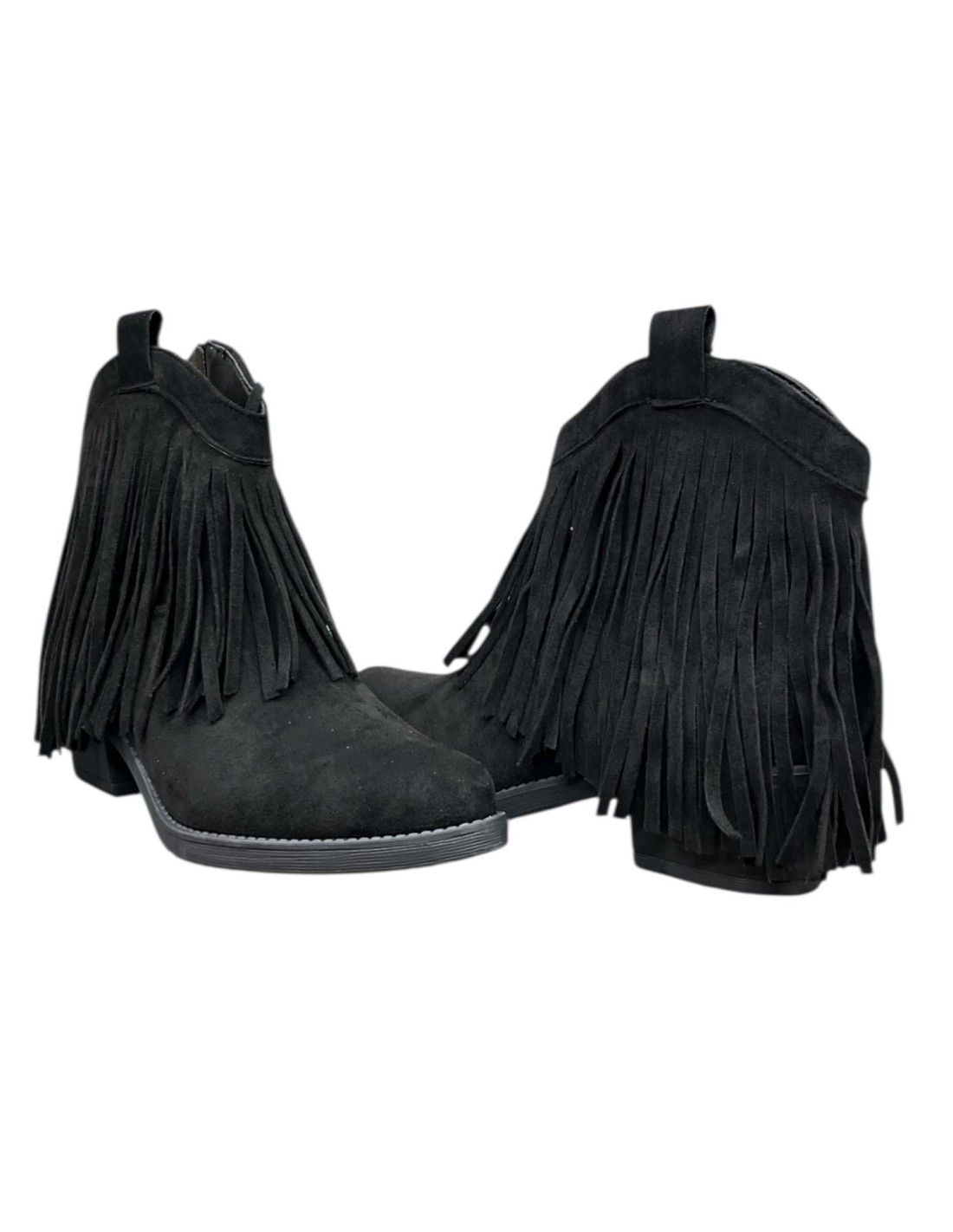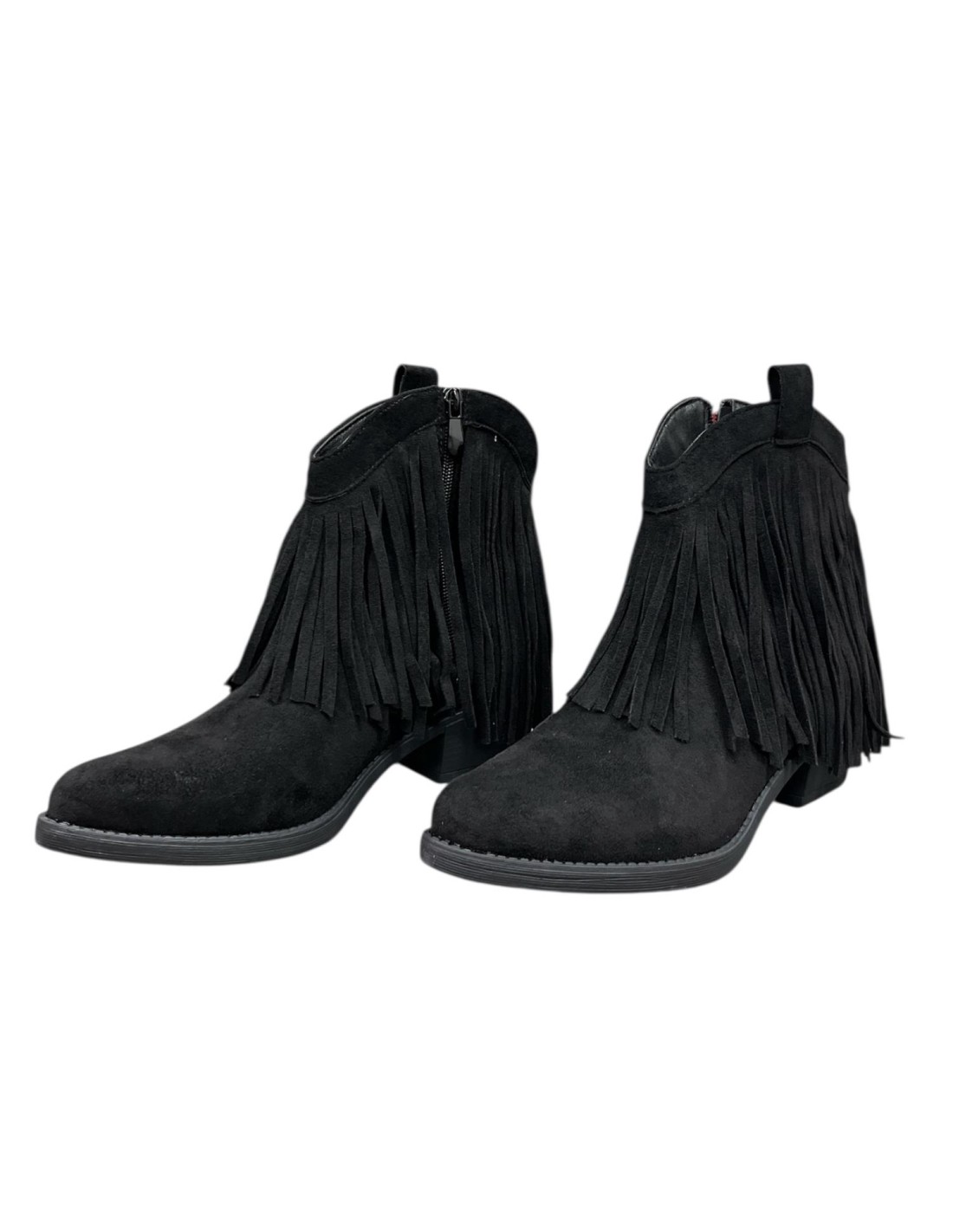 Botín de serraje con flecos. Tacón de 5 cm y altura de 19 cm