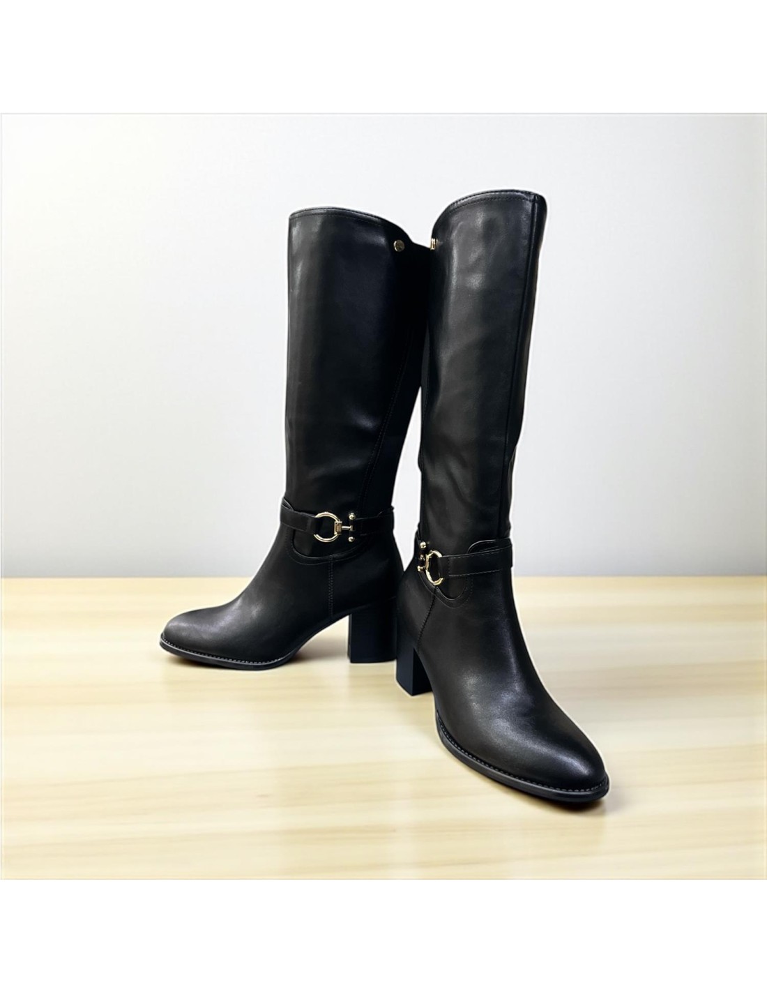 Bota alta con tacón ancho y hebilla. Tacón de 7 cm y altura de la bota 45 cm