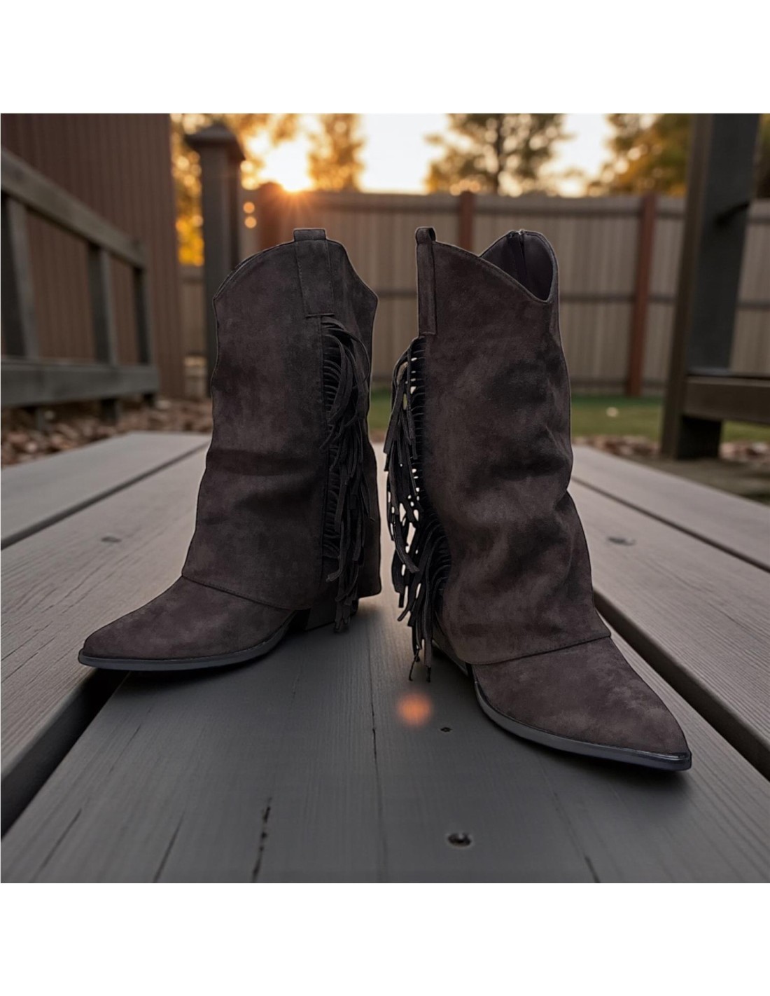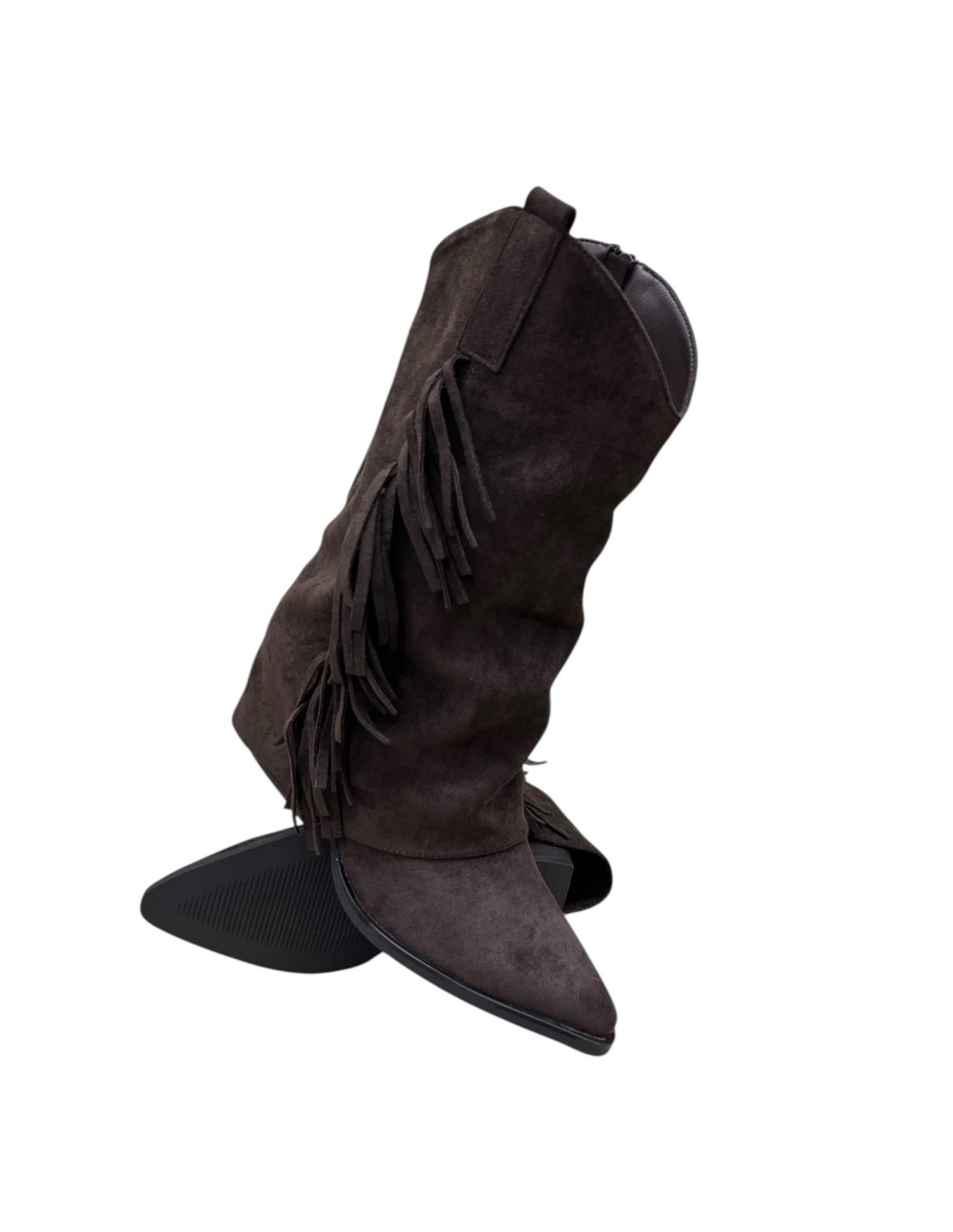 Bota con flecos laterales, plana, cortita, pala anchita.