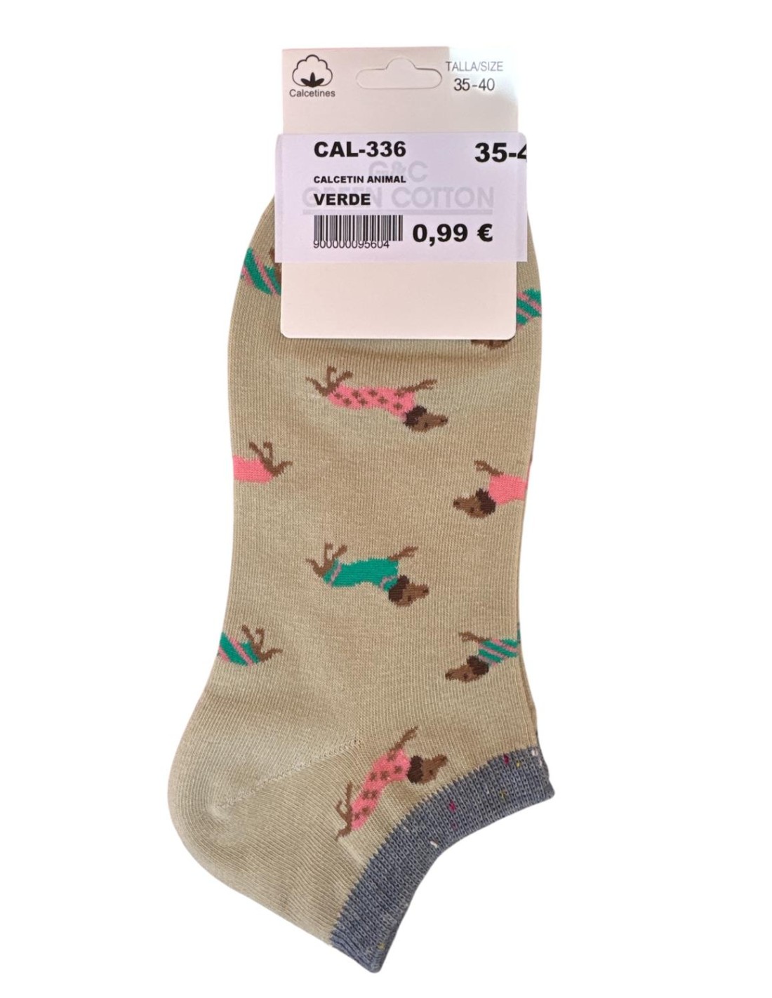 Calcetin tobillero bicolor estampado perros, 98% algodon.
