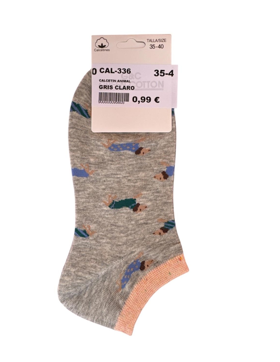 Calcetin tobillero bicolor estampado perros, 98% algodon.