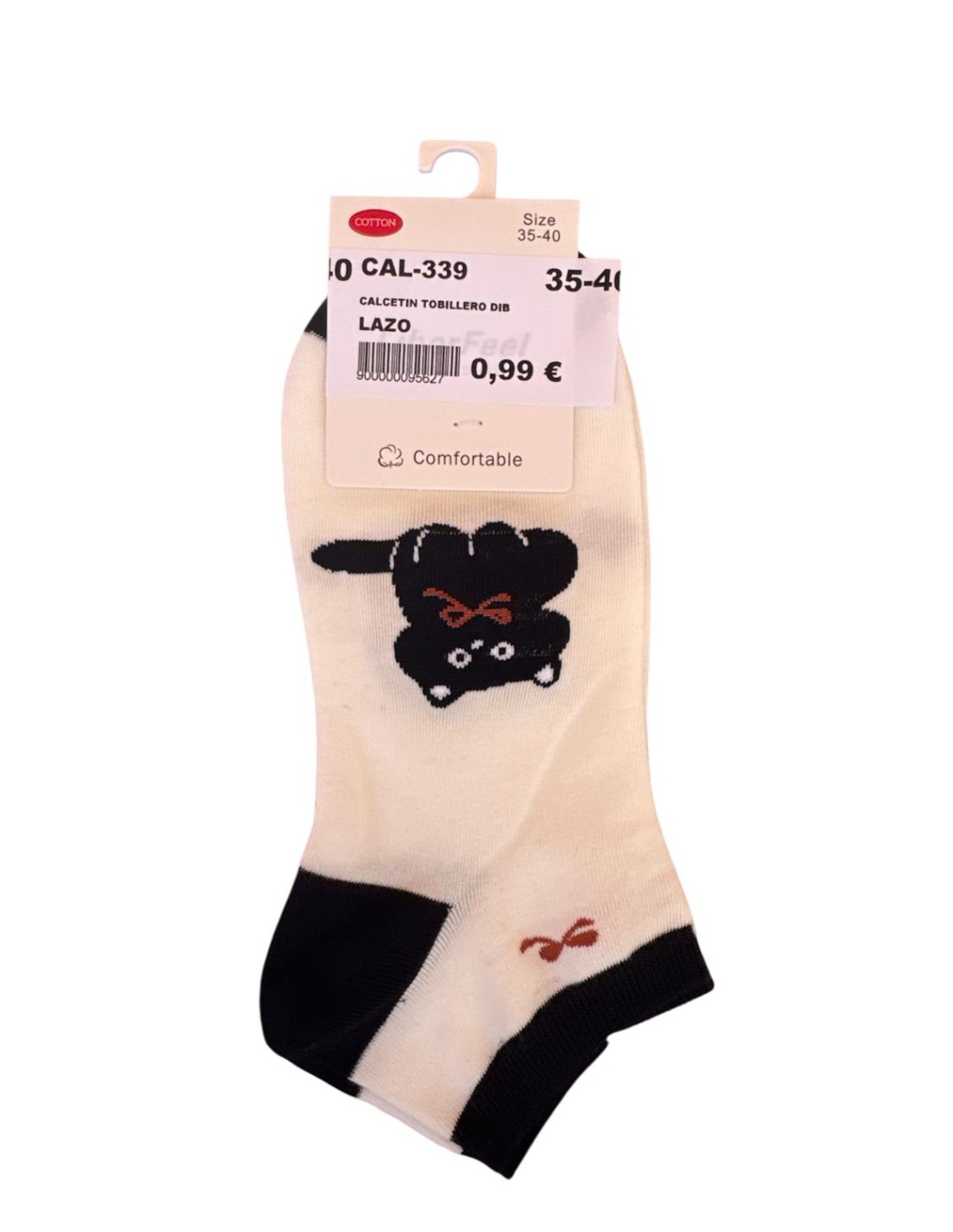 • CALCETIN TOBILLERO DIBUJO NEGRO