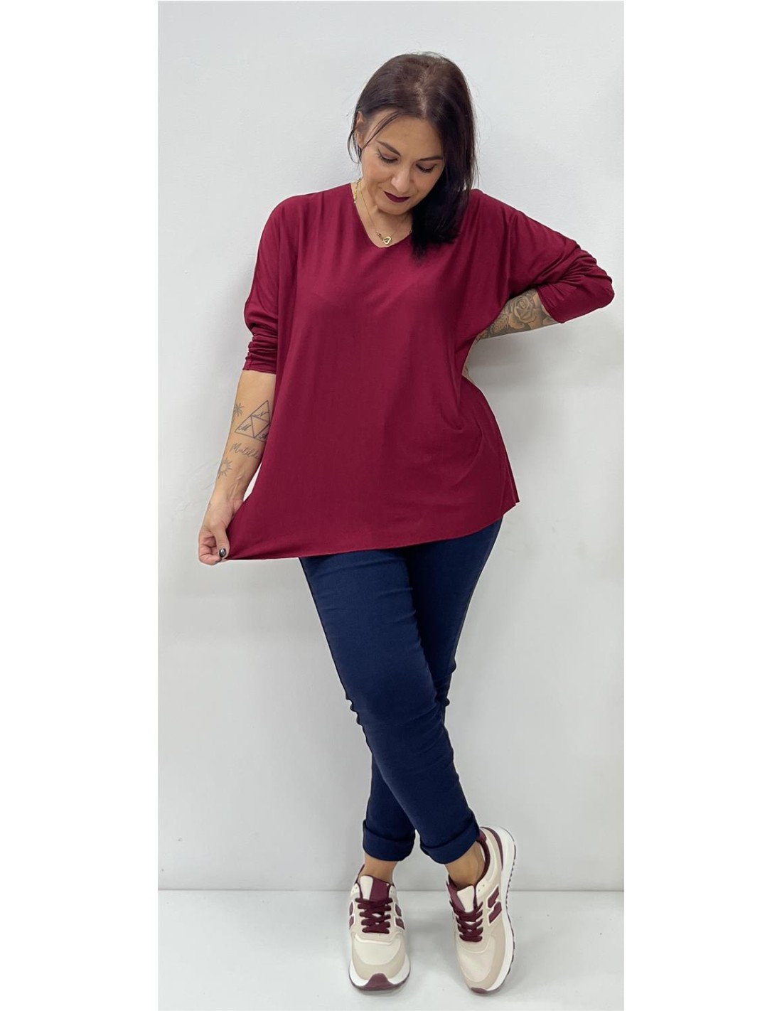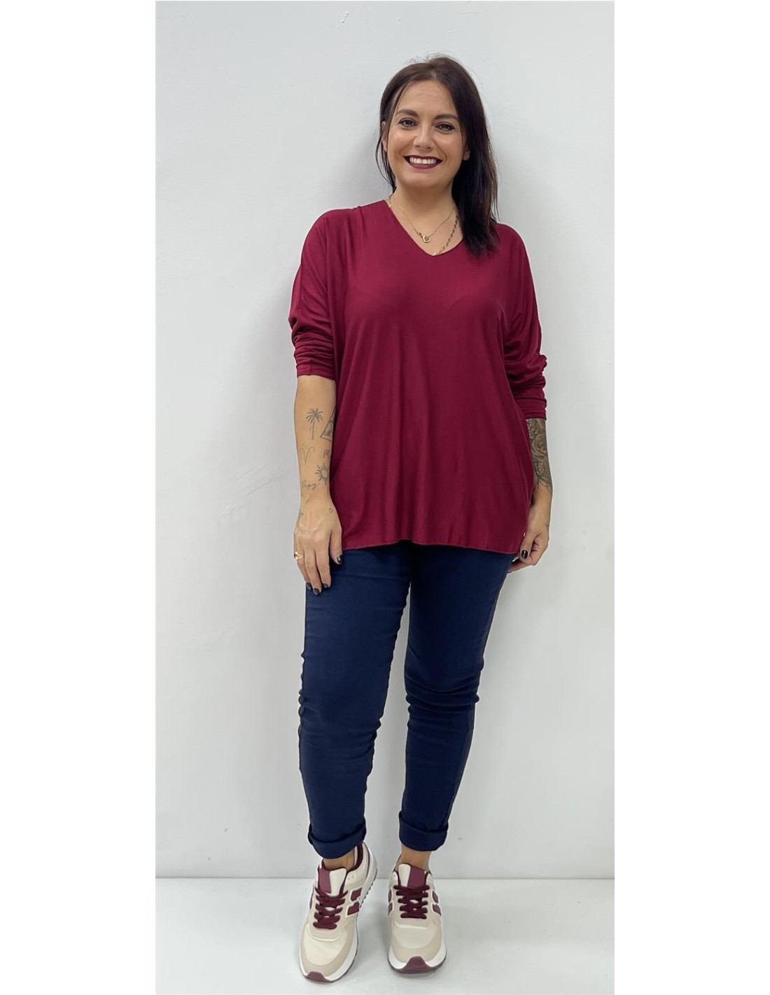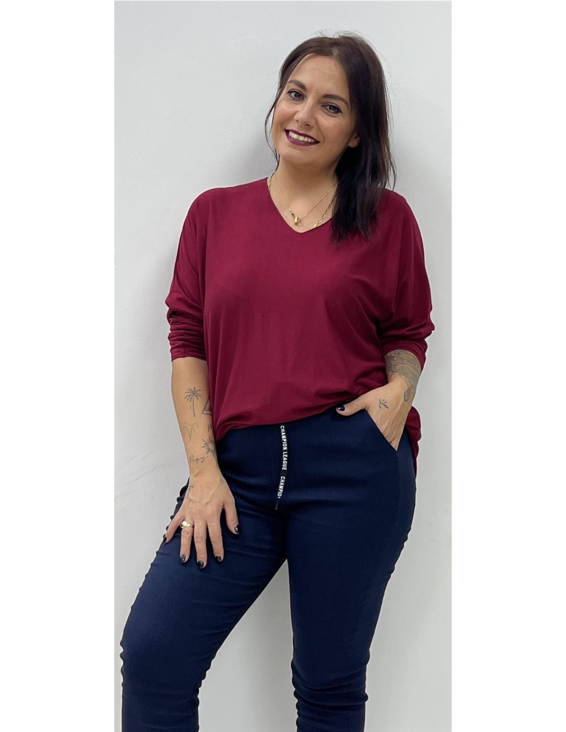 Camiseta lisa con cuello V. Su talla puede dar desde una 38 hasta una 44. Combinada con el pantalón SEVILLA y la deportiva DX224 y el bolso BL45-533
