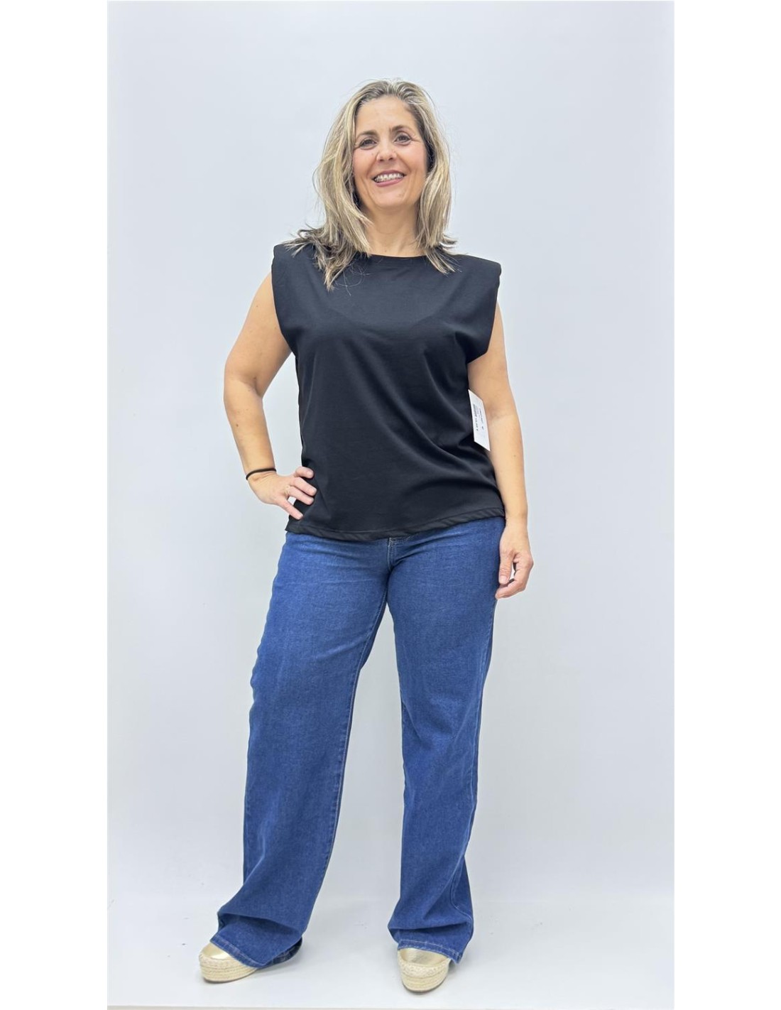 Camiseta lisa con hombrera 100% algodon. Es talla unica y da desde la 36 hasta la 44.