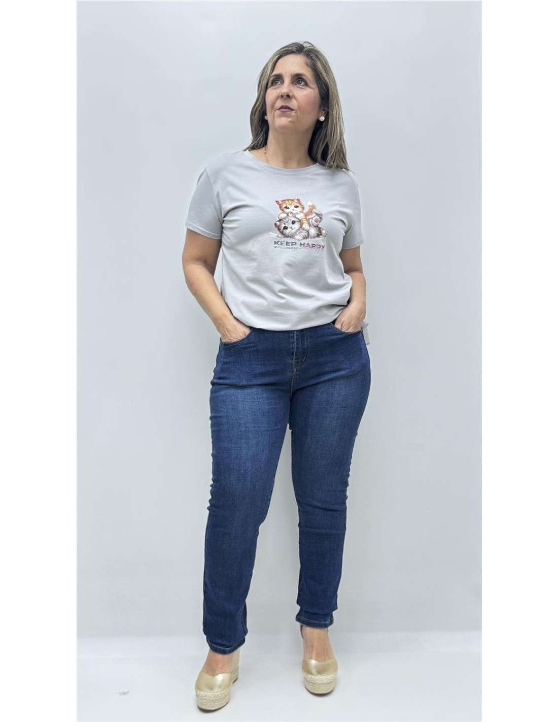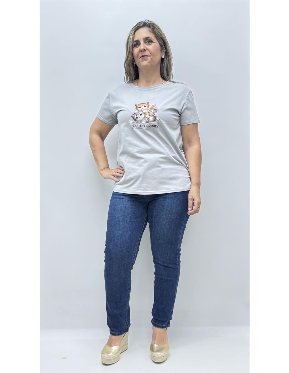 CAMISETA GATO GRIS