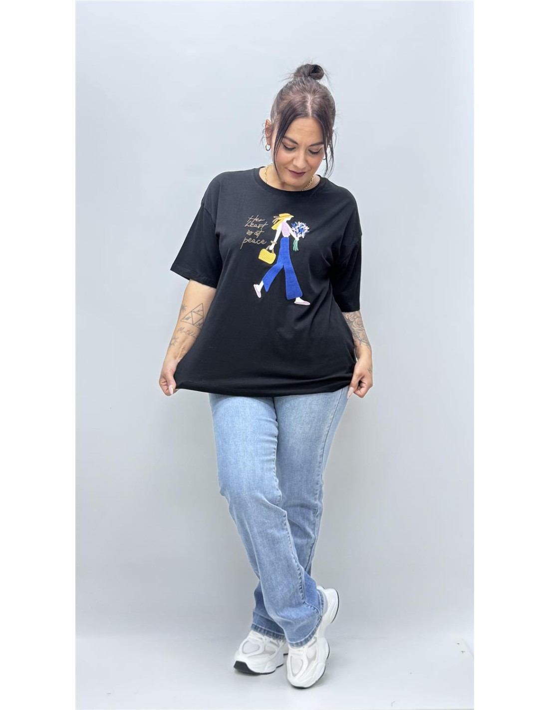 Camiseta de algodon con detalle de mujer en relieve. Vienen por talla dando la M-L(38-42) L-XL(40-44) y XL-2XL(42-46)