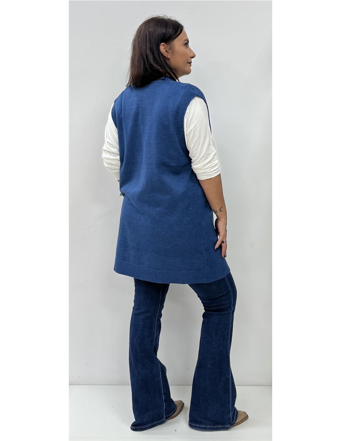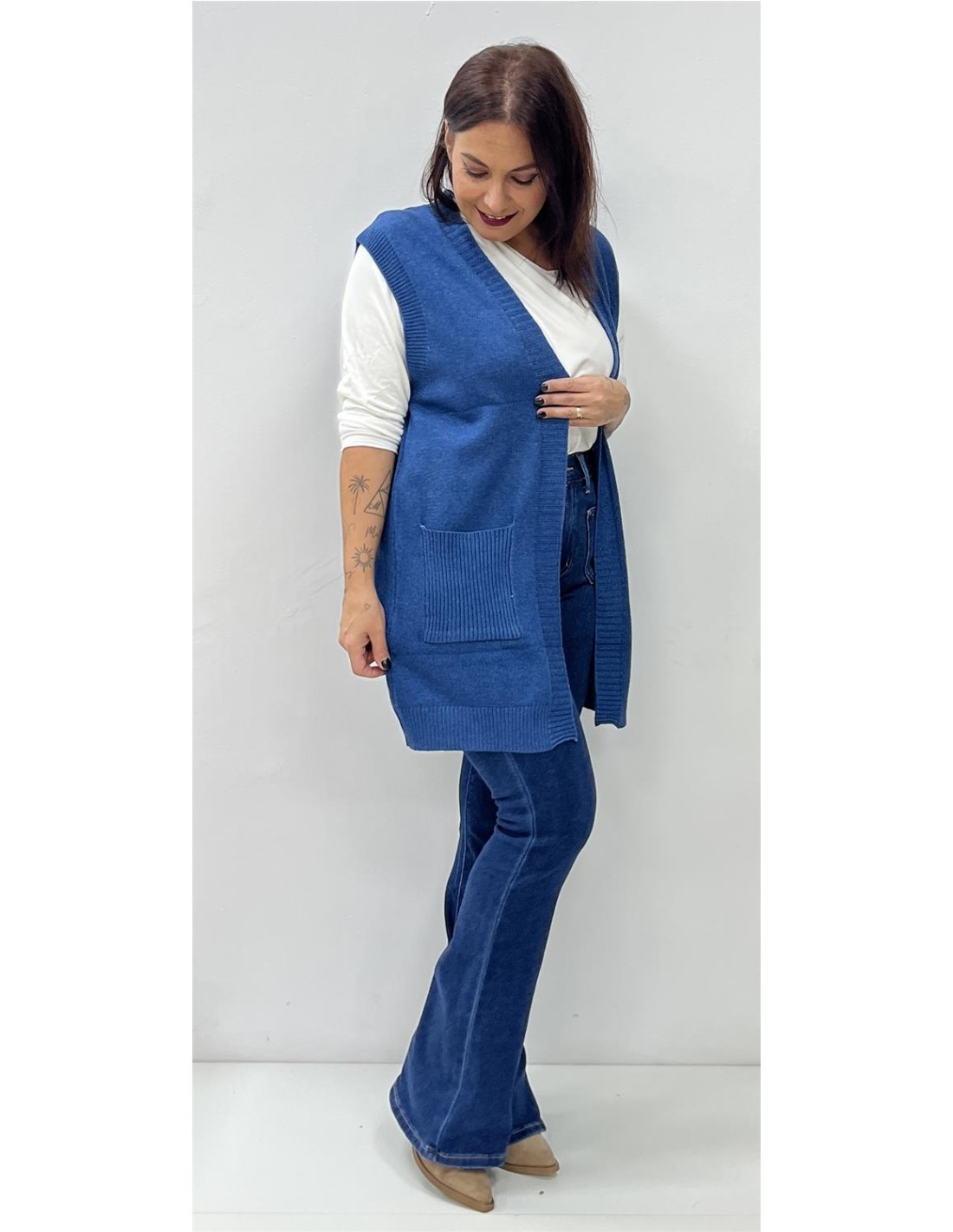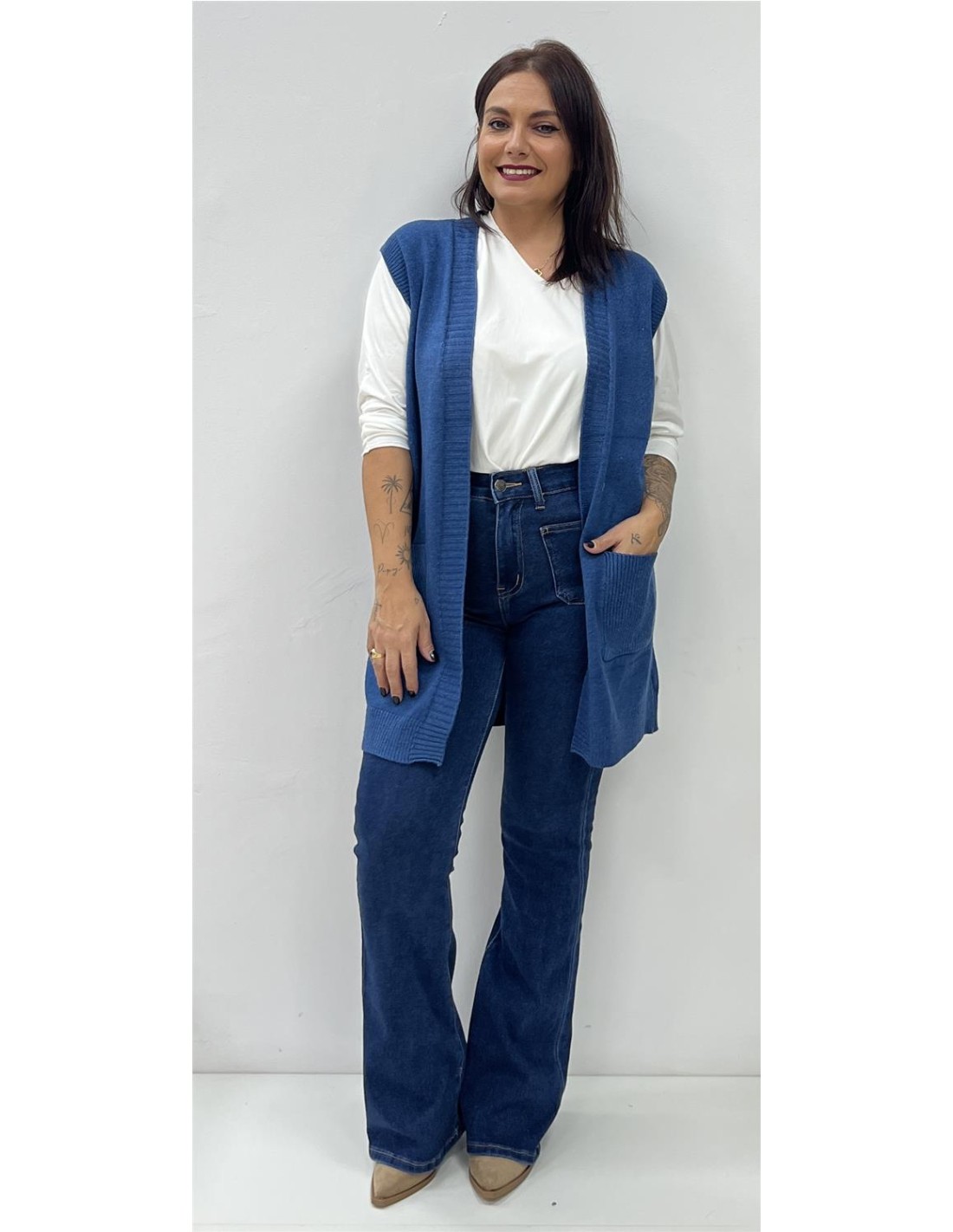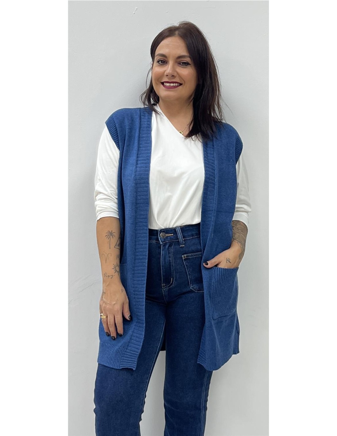 Chalequillo largo con bolsillos. Su talla puede dar desde una 36 hasta una 44. Combinado con el pantalón ZOE y la camiseta VIDA