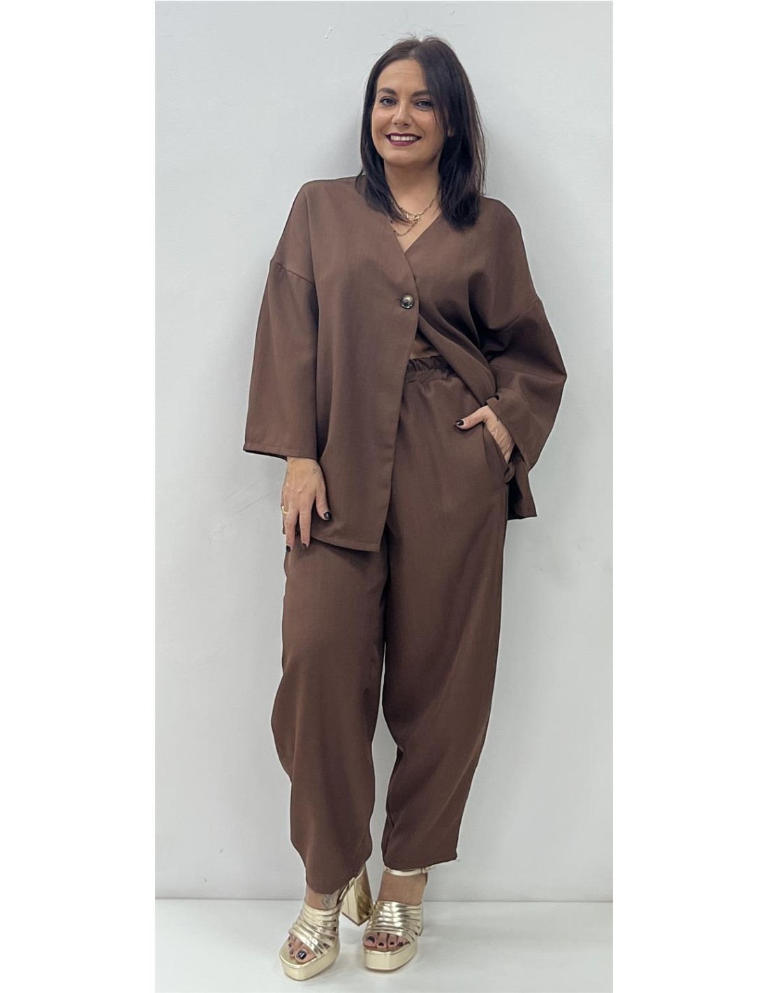 Conjunto compuesto por pantalon y camisa, es talla unica, el pantalon da desde la 40-44 y la camisa desde la 40-46.