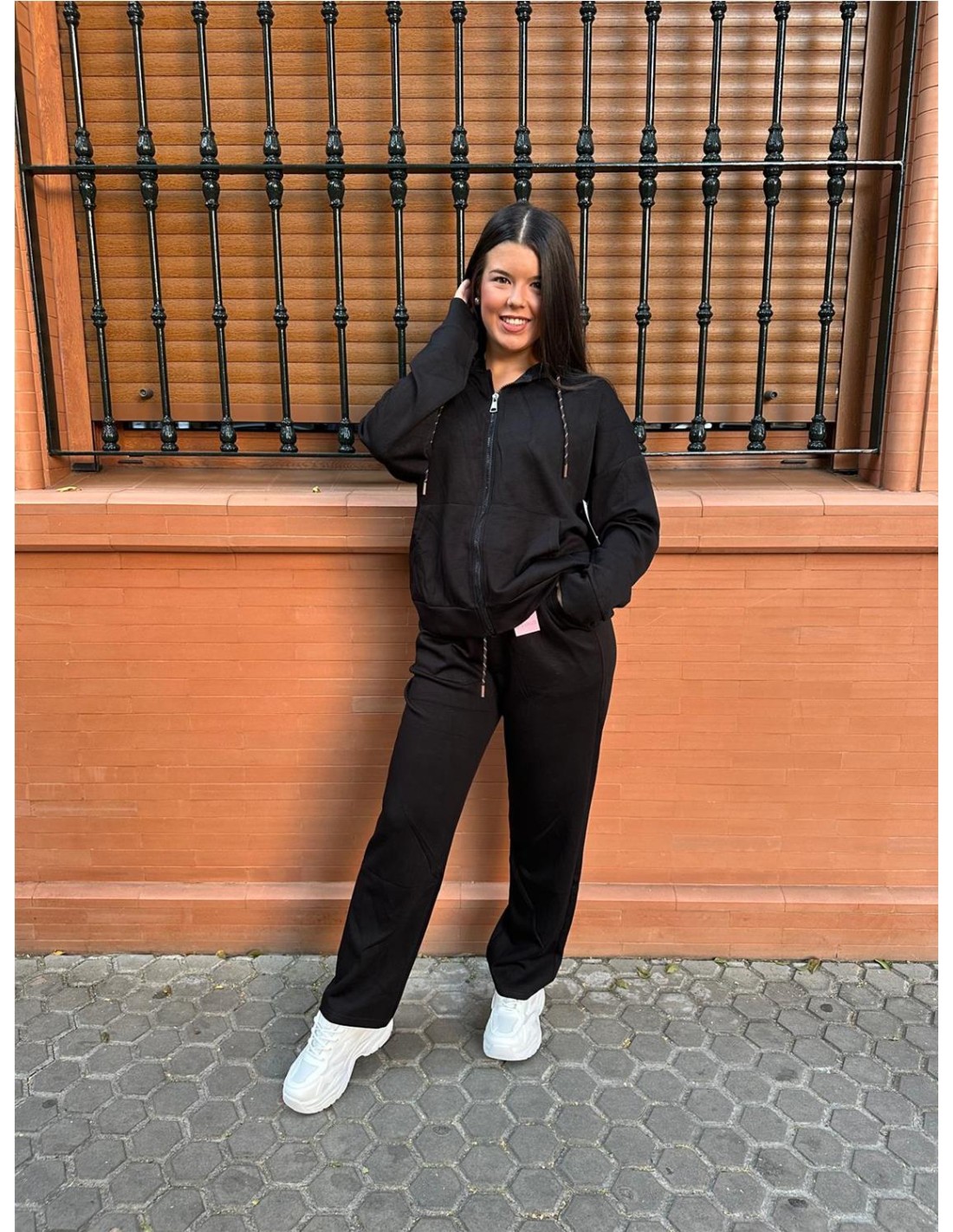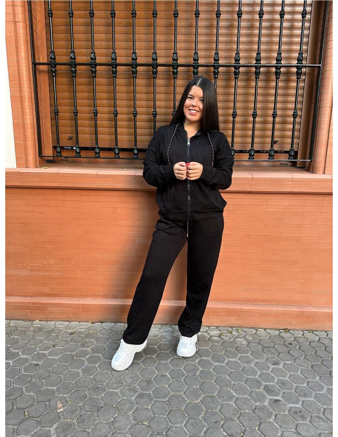 De algodon, 2 partes con sudadera con capucha y cremallera. Sus tallas son S/M, L/XL Y 2XL/3XL.