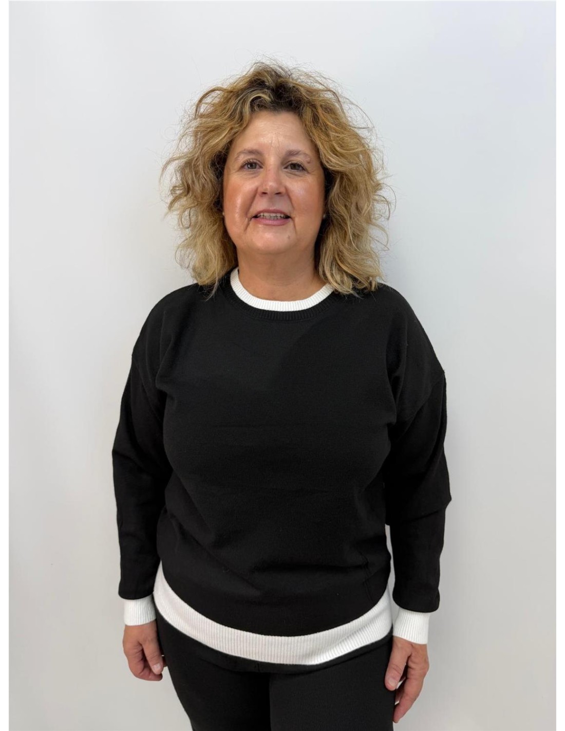 De punto, cintura elástica, cuello redondo. Su talla va desde una 34 hasta una 42-44 aproximadamente.
