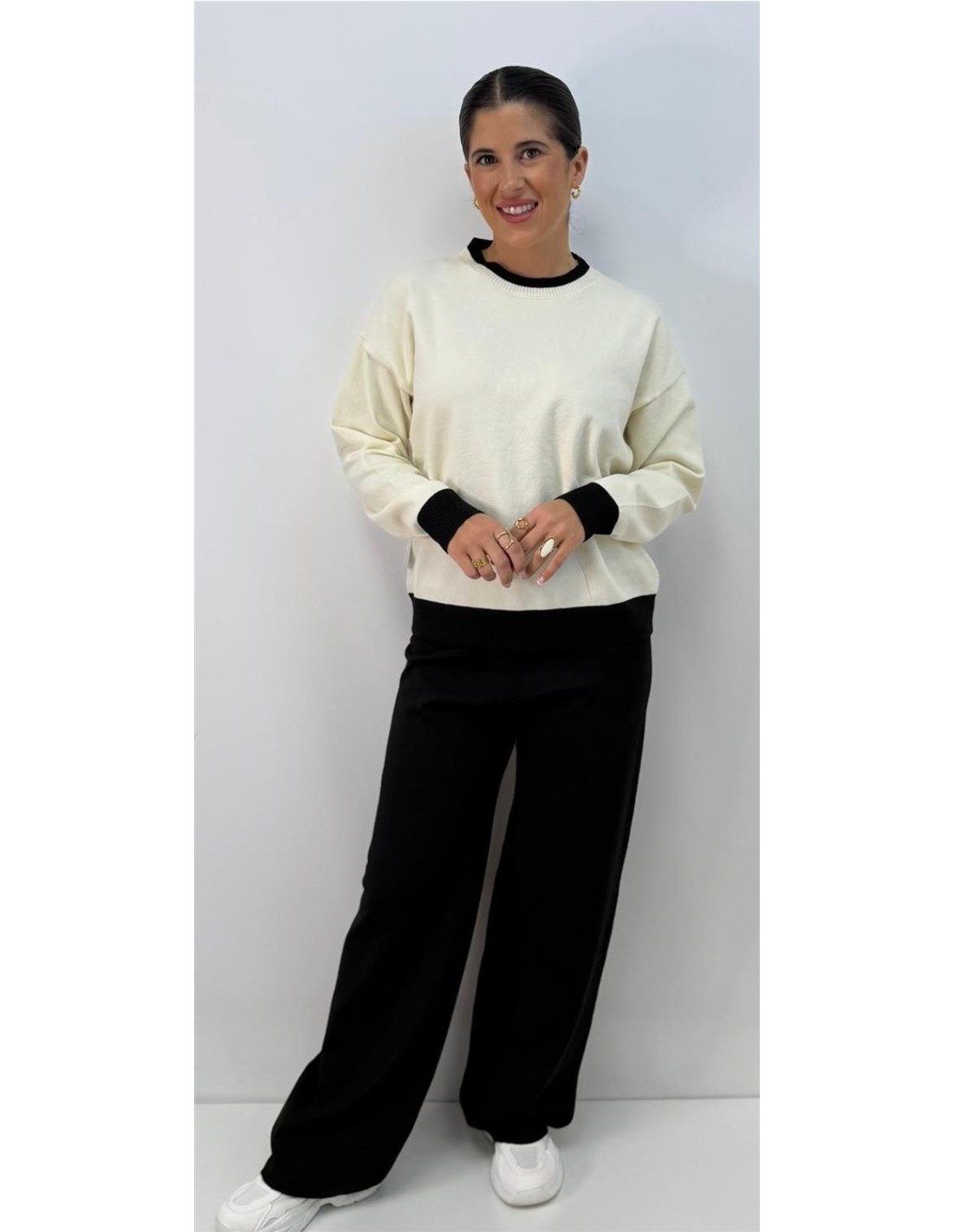 De punto, cintura elástica, cuello redondo. Su talla va desde una 34 hasta una 42-44 aproximadamente.