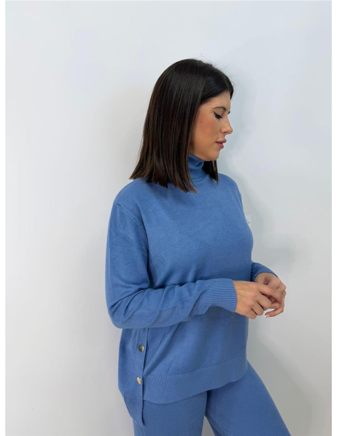 Conjunto de punto, chaleco de cuello vuelto, con botones lateral. Su talla va desde una 34 hasta una 44 aproximadamente.