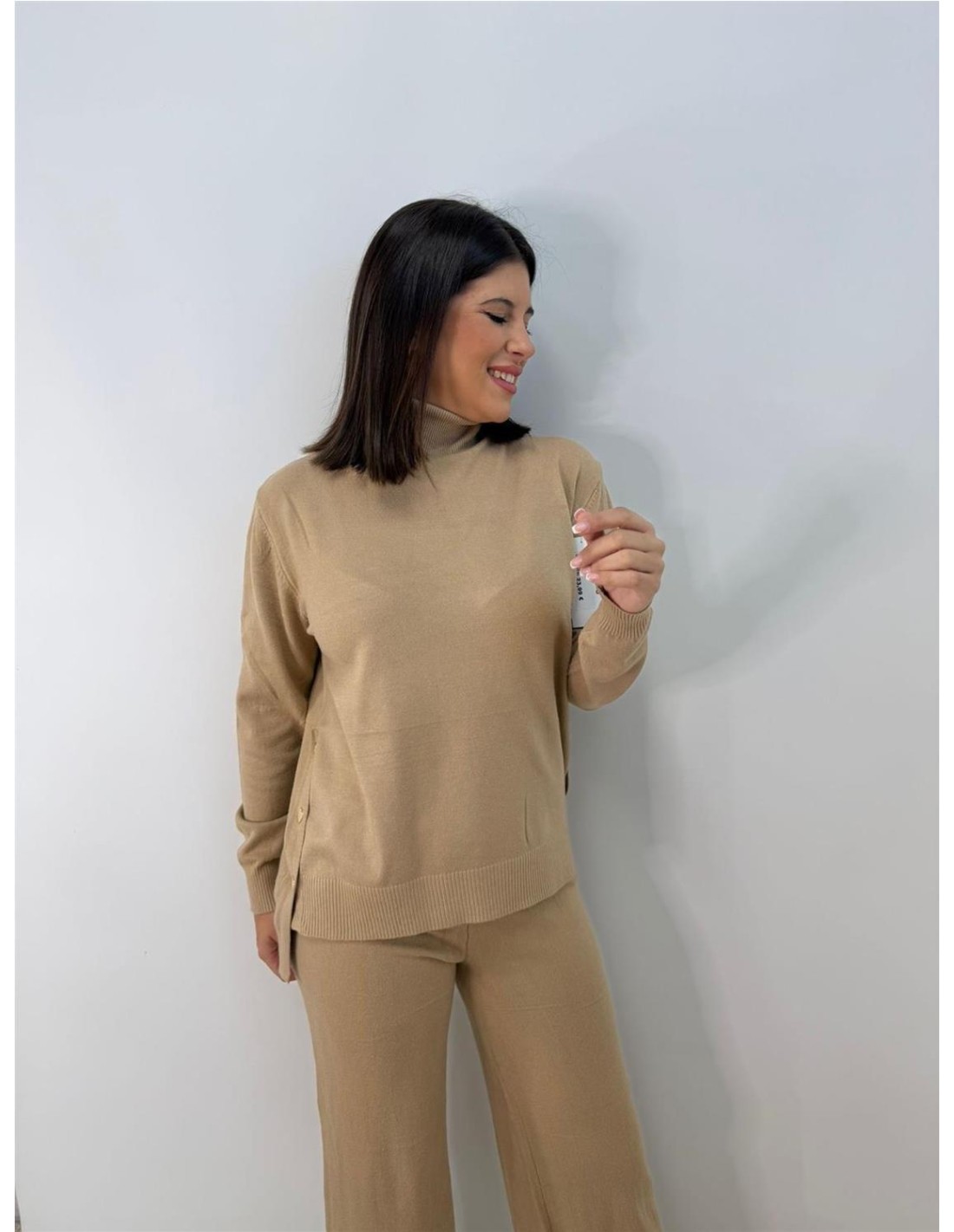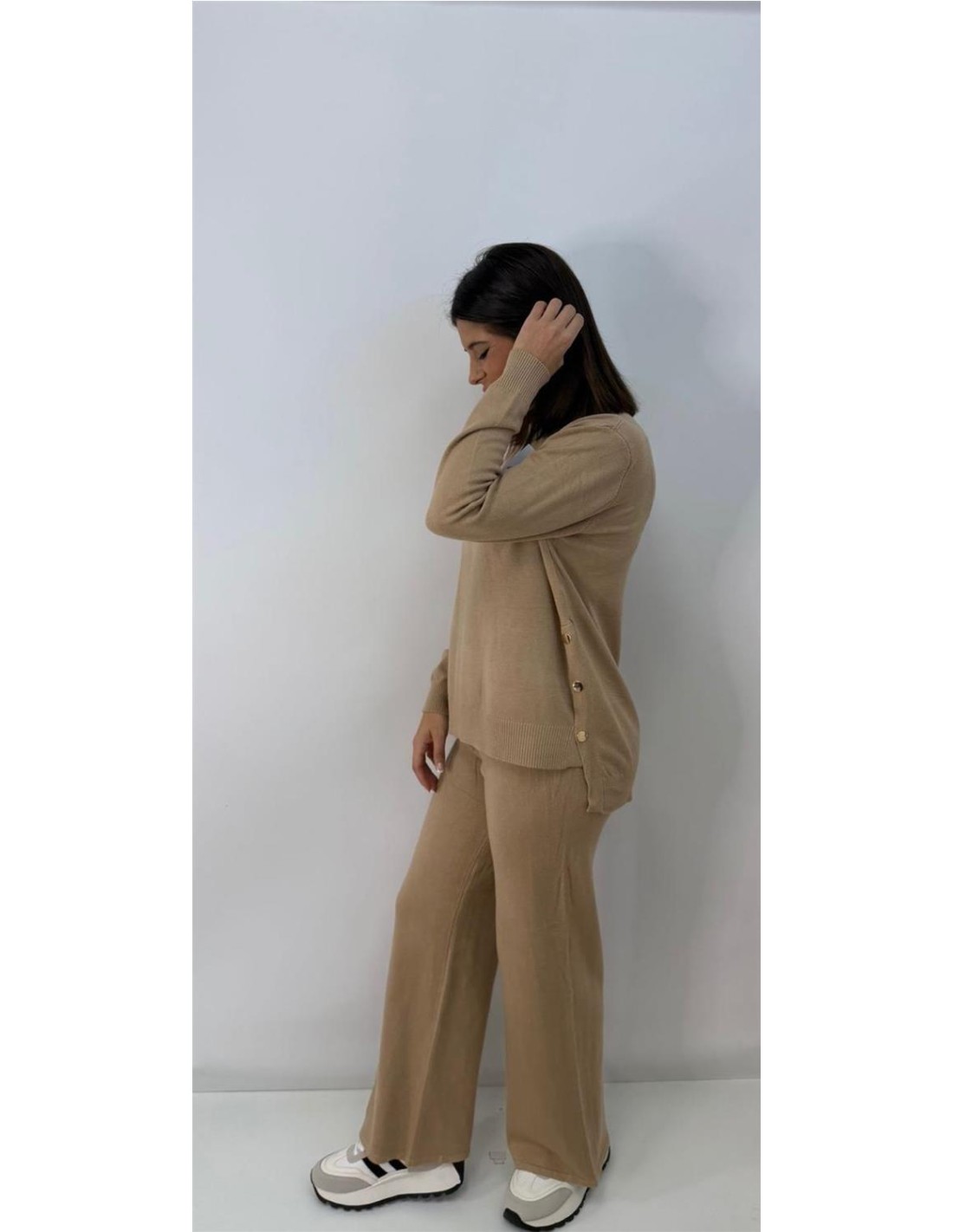 Conjunto de punto, chaleco de cuello vuelto, con botones lateral. Su talla va desde una 34 hasta una 44 aproximadamente.