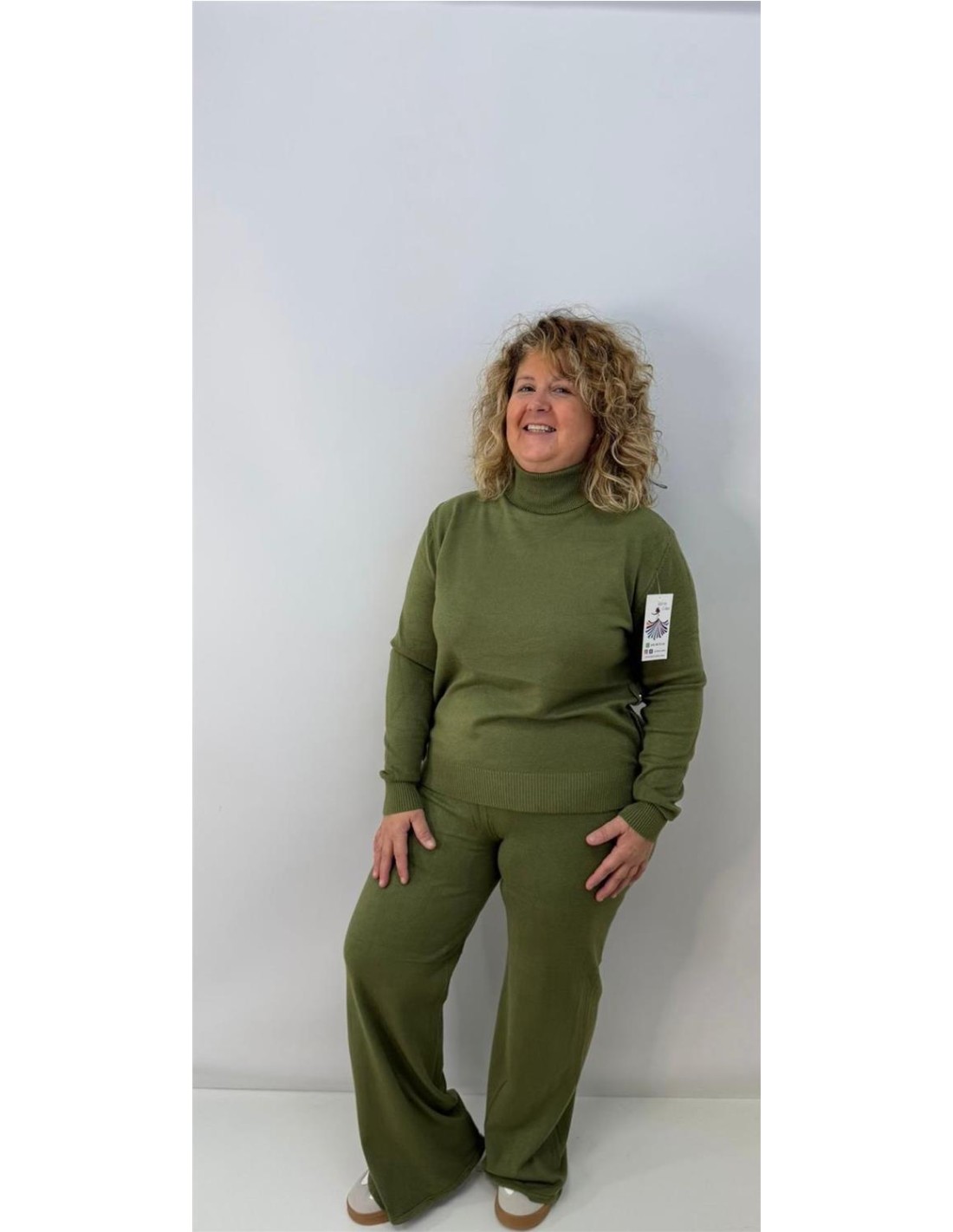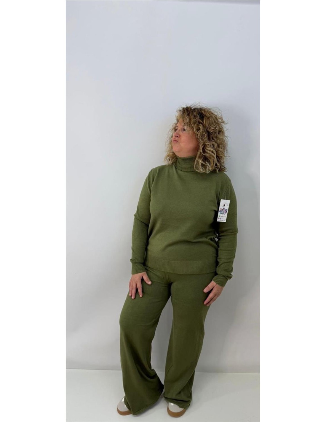 Conjunto de punto, chaleco de cuello vuelto, con botones lateral. Su talla va desde una 34 hasta una 44 aproximadamente.