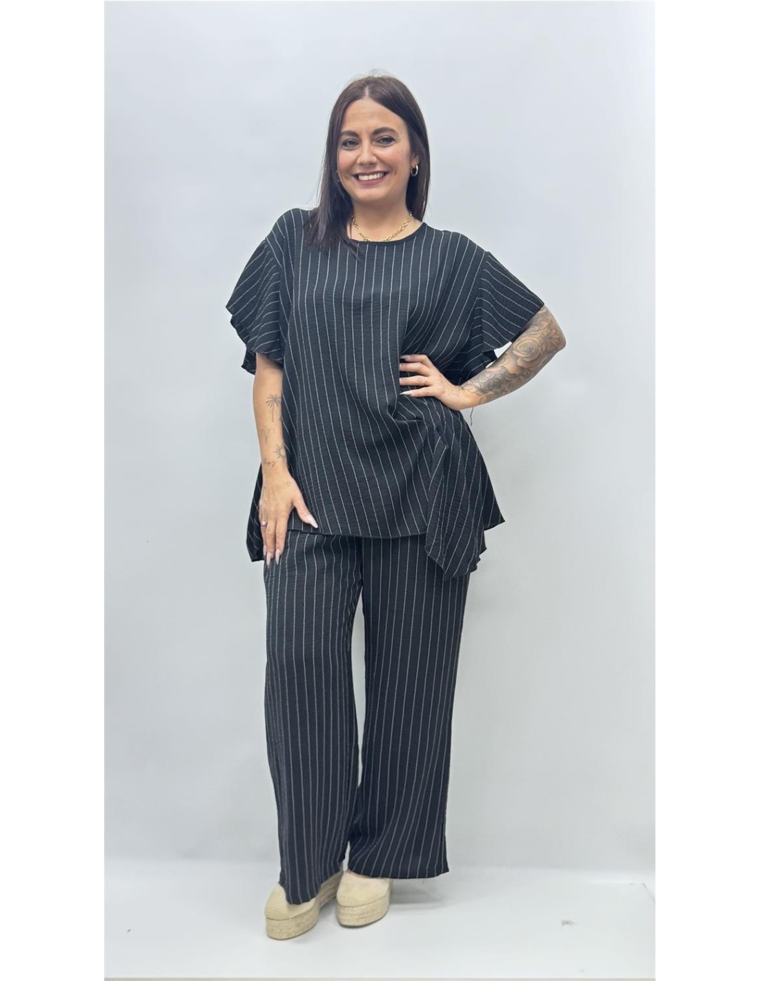 Conjunto oversize de rayas diplomtaticas, compuesto por pantalon con bolsillos y camisa con frunce, vienen por talla dando aprx M-l (40-44) y XL-2XL (42-46)