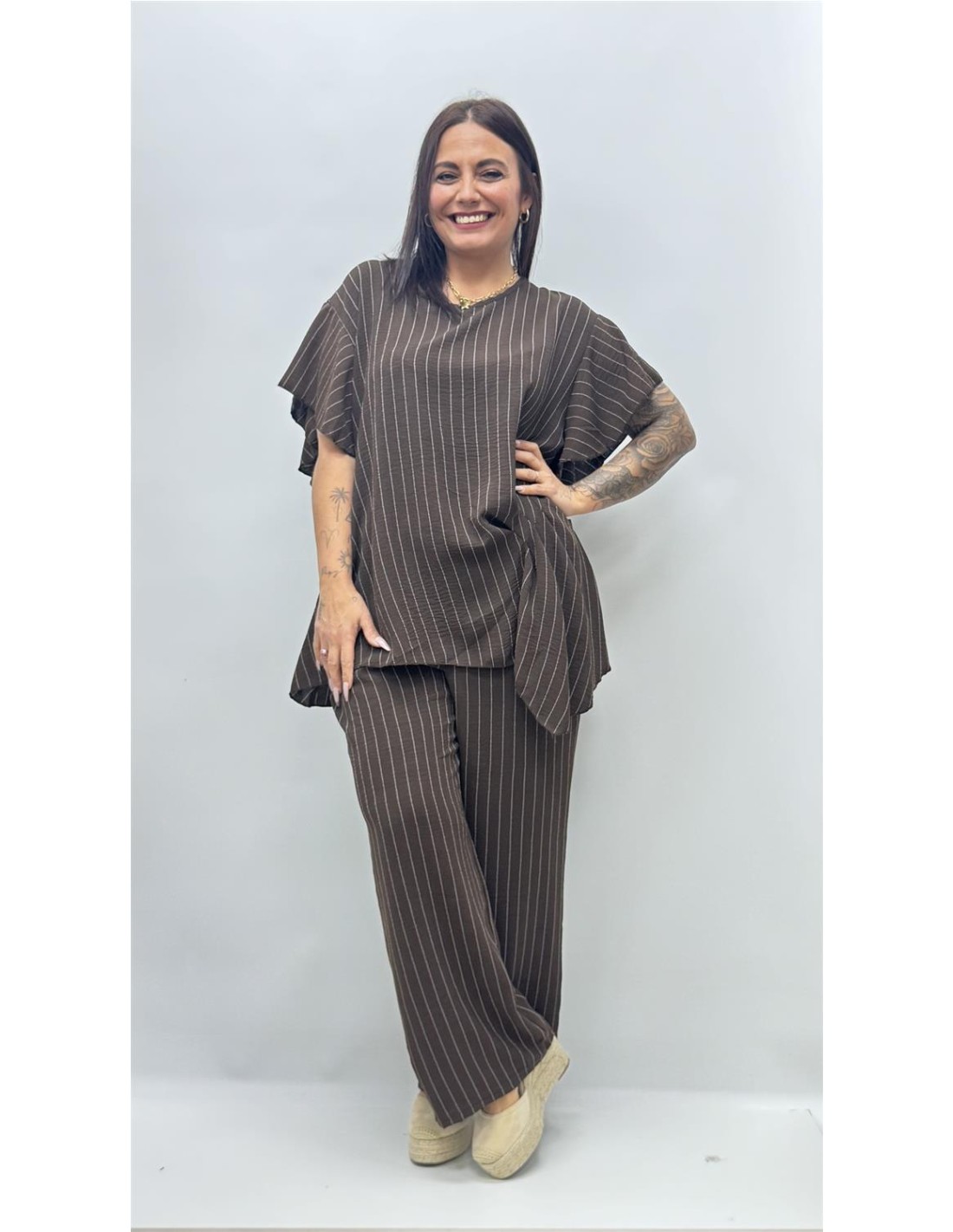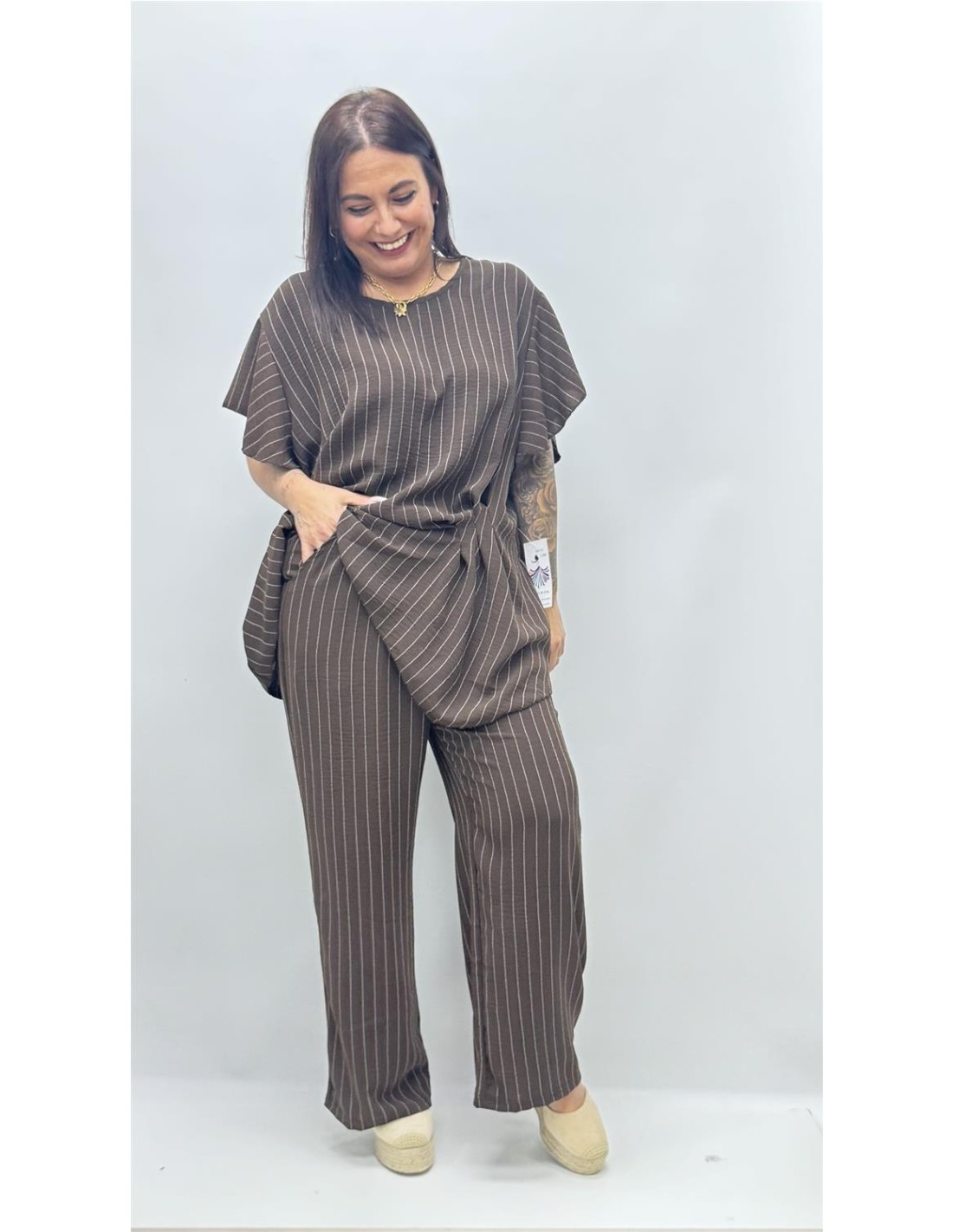 Conjunto oversize de rayas diplomtaticas, compuesto por pantalon con bolsillos y camisa con frunce, vienen por talla dando aprx M-l (40-44) y XL-2XL (42-46)