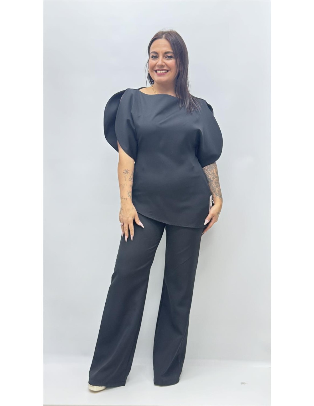 Conjunto formado con pantalon con bolsillo y top asimetrico, es de talla unica y puede dar aprox desde la 36 hasta la 40.