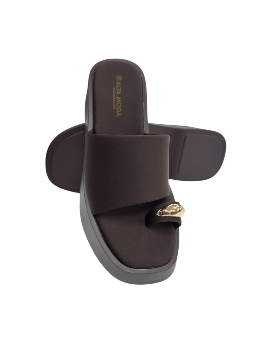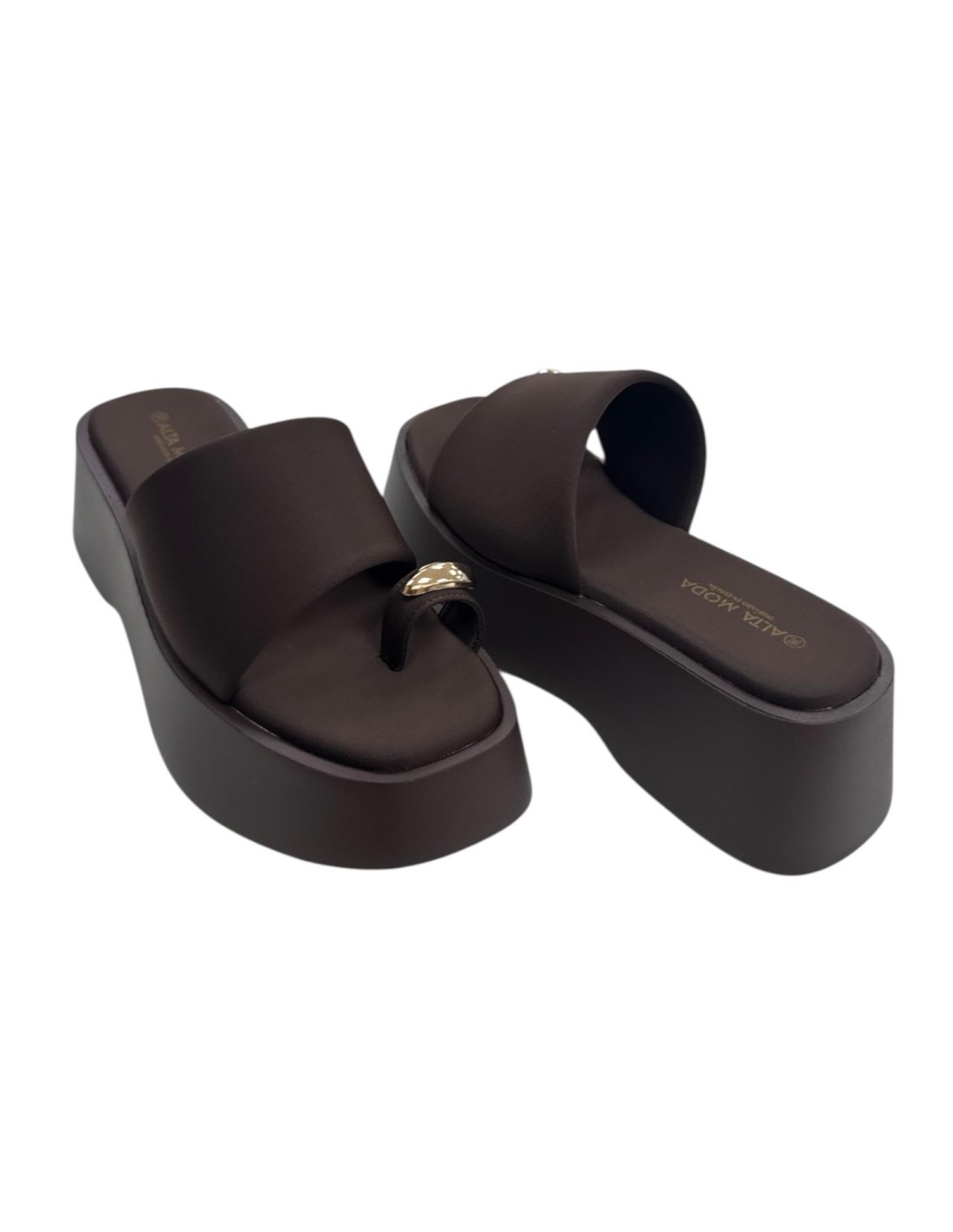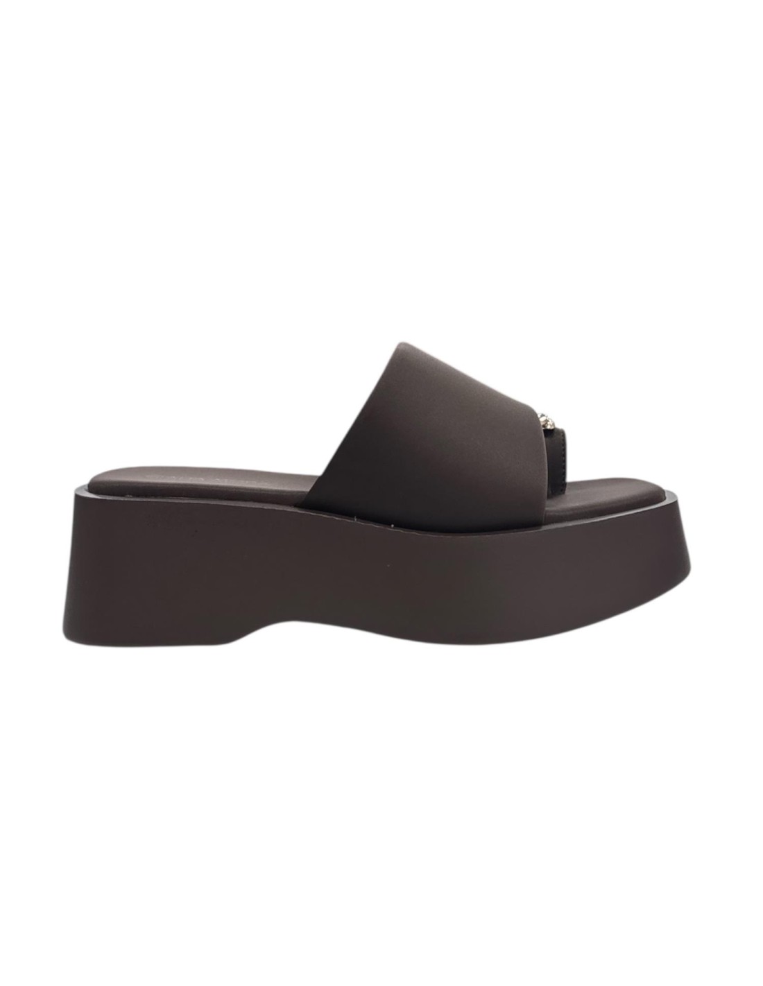 SANDALIA CUÑA ADORNO METAL MARRON