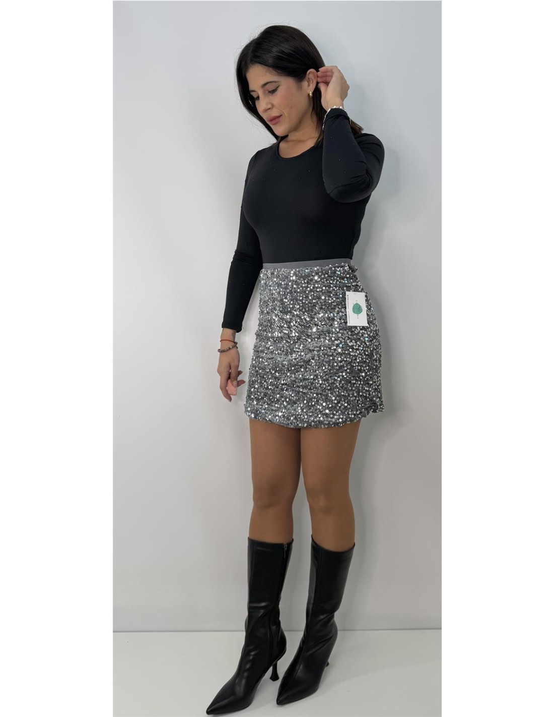 FALDA LENTEJUELAS GRIS