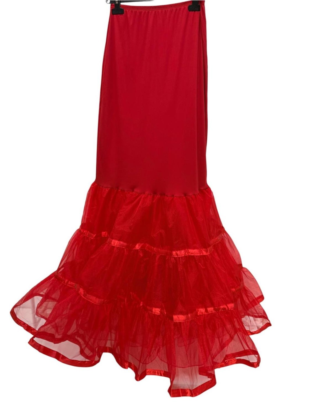 Cancan de licra con tull, cinturilla elástica. Talla única desde una 36 hasta una 44 aproximadamente.