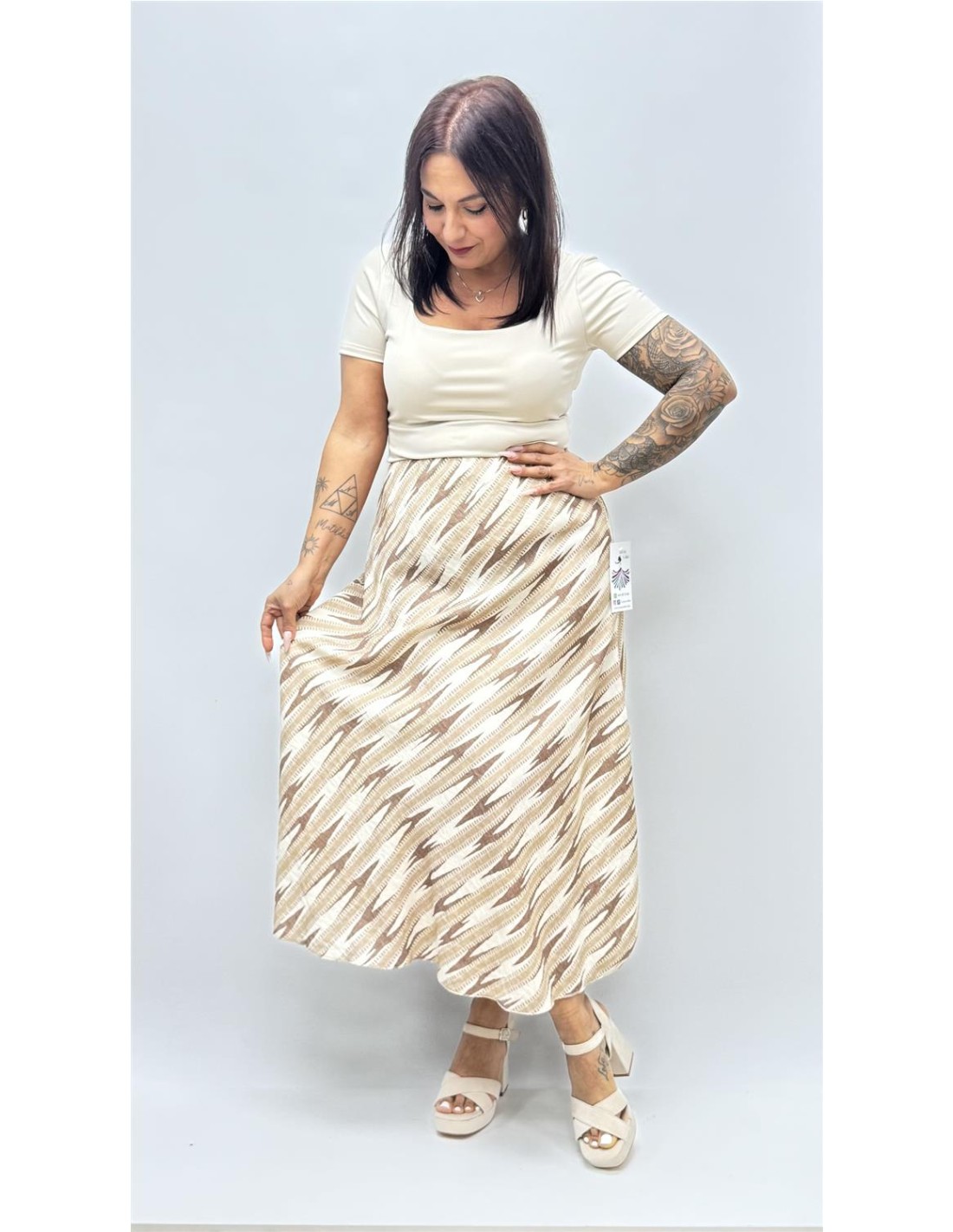 Falda estampada largo midi, combinada con nuestra camiseta enma, es talla unica y da aprox. desde la 36 hasta la 42.