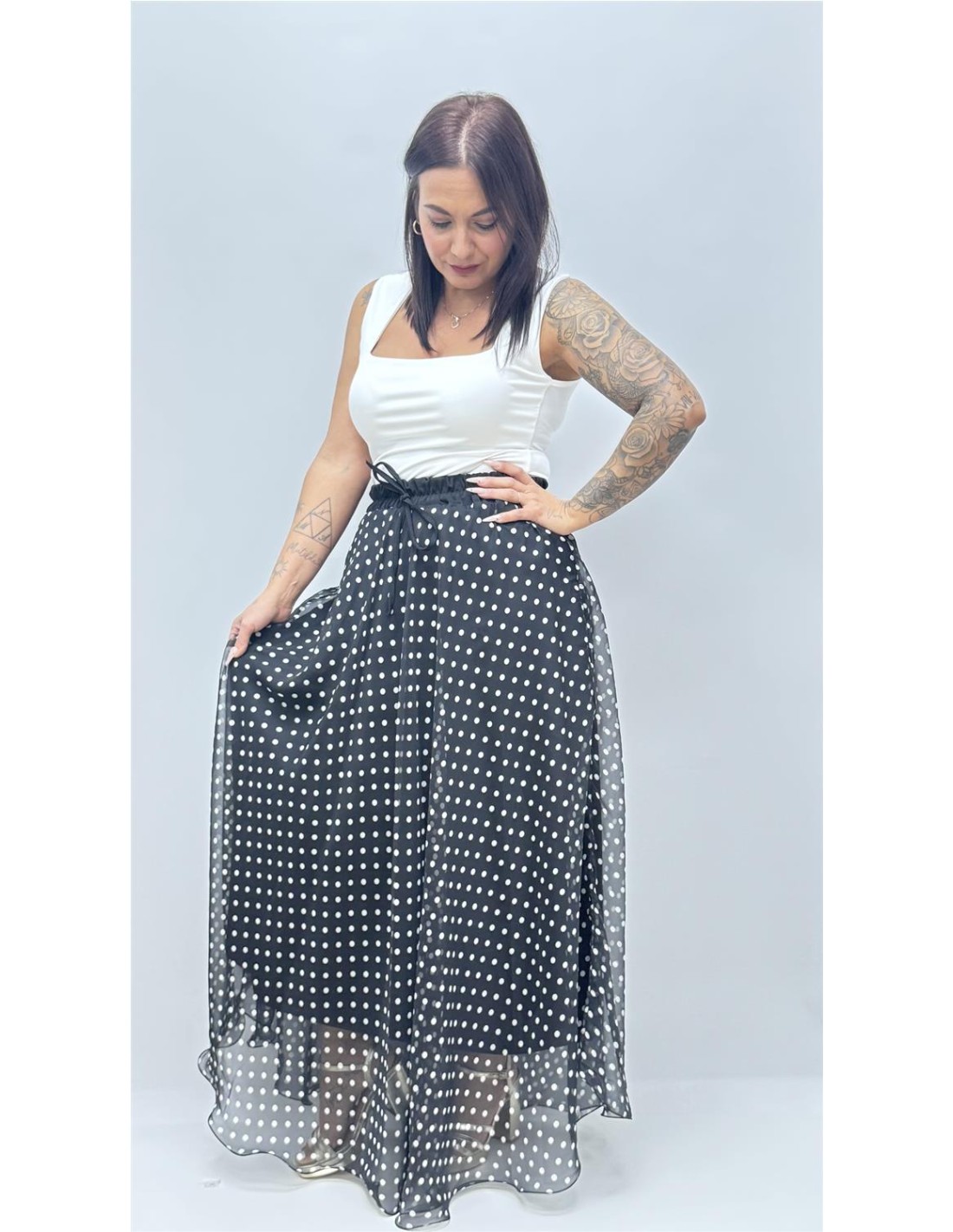 Falda larga de gasa capeada, estampado lunar, es de talla unica dando apox desde la 36-44
