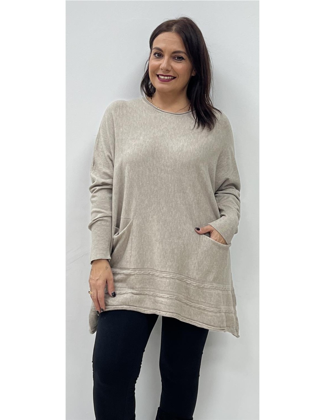 Maxijersey de punto con bolsillos. Su talla puede dar desde una 38 hasta una 48. Combinado con las botas BT204 y la MAYA CANARIA