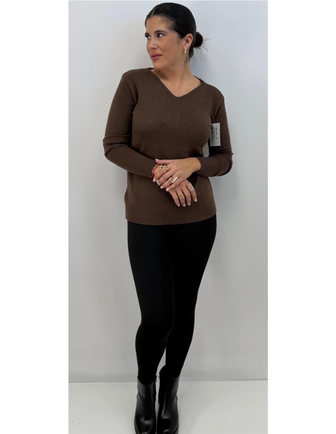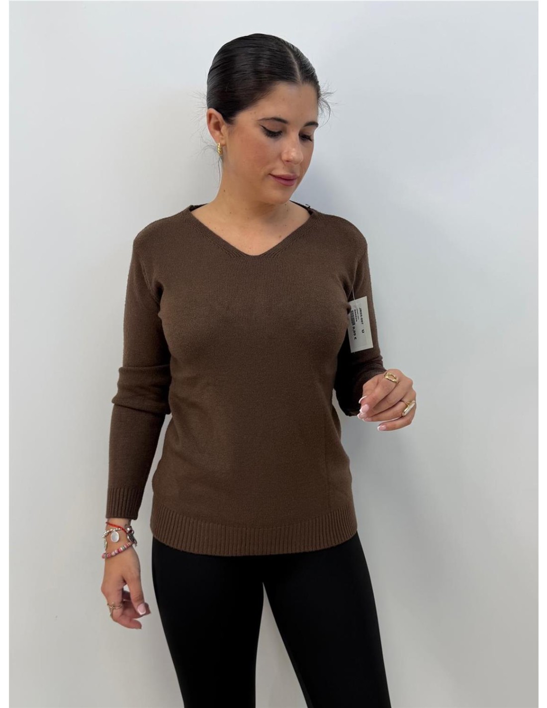 De cuello de pico, de punto, mangas largas. Su talla va desde una 36 hasta una 42-44 aproximadamente.