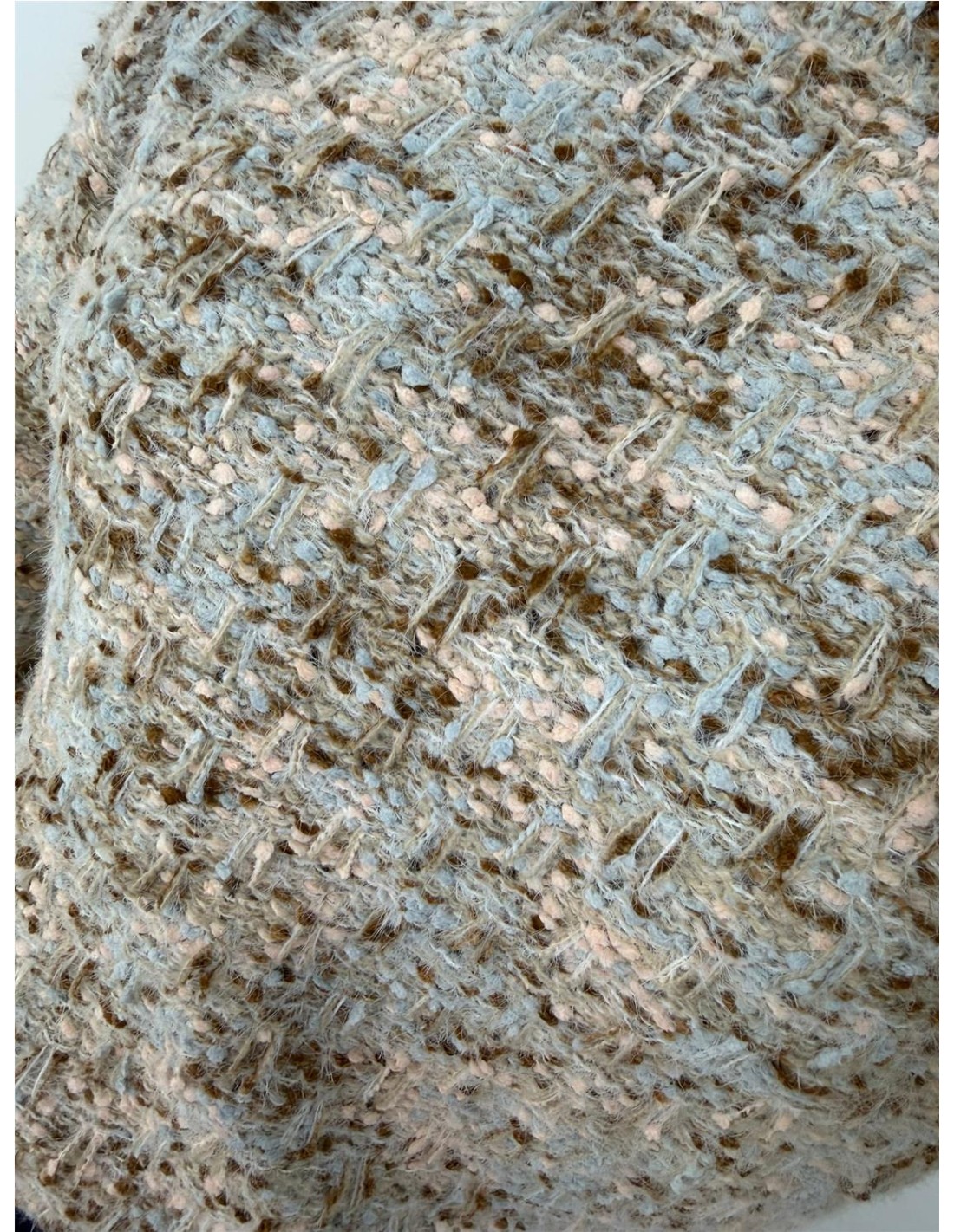 De chinilla, multicolor. Su talla va desde una 34 hasta una 44 aproximadamente.