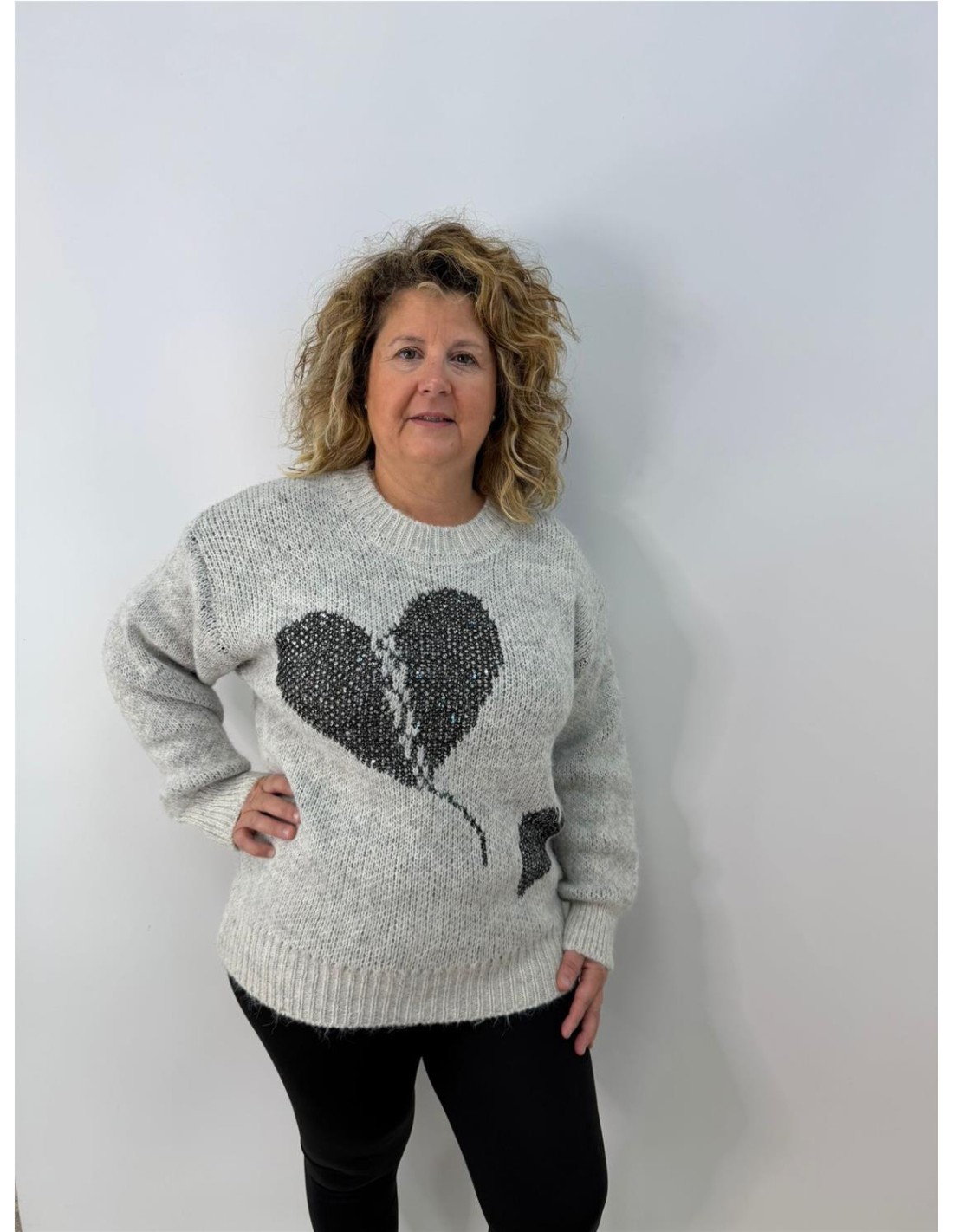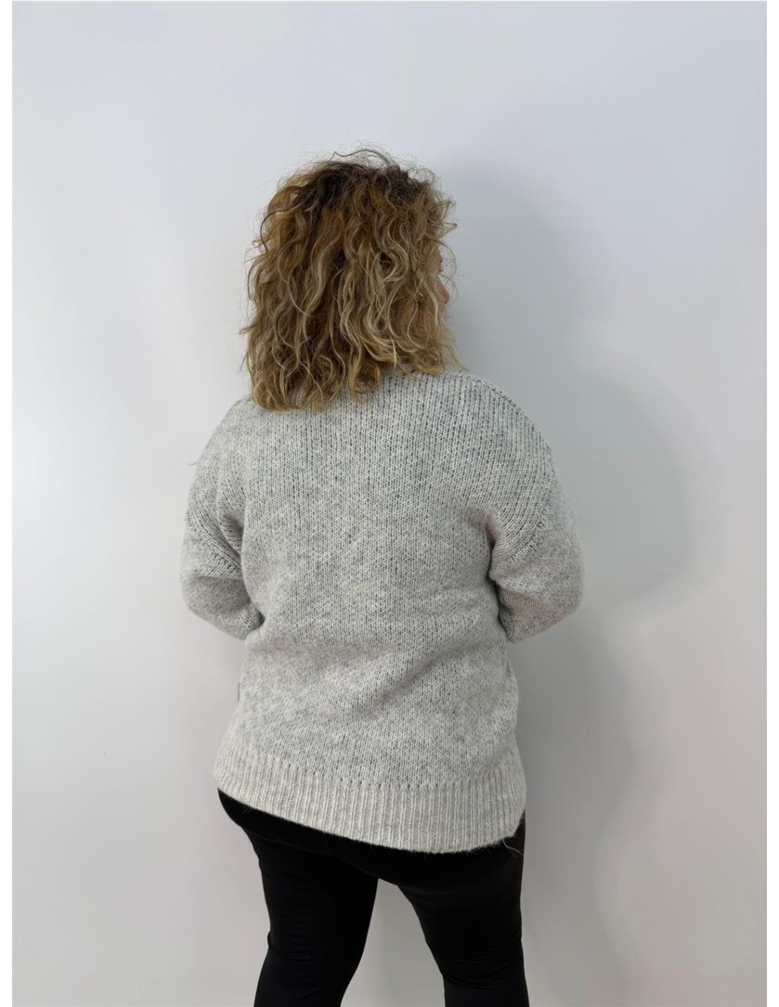 De lana con dibujo con hilo de brillo. Su talla va desde una 34 hasta una 46 aproximadamente.