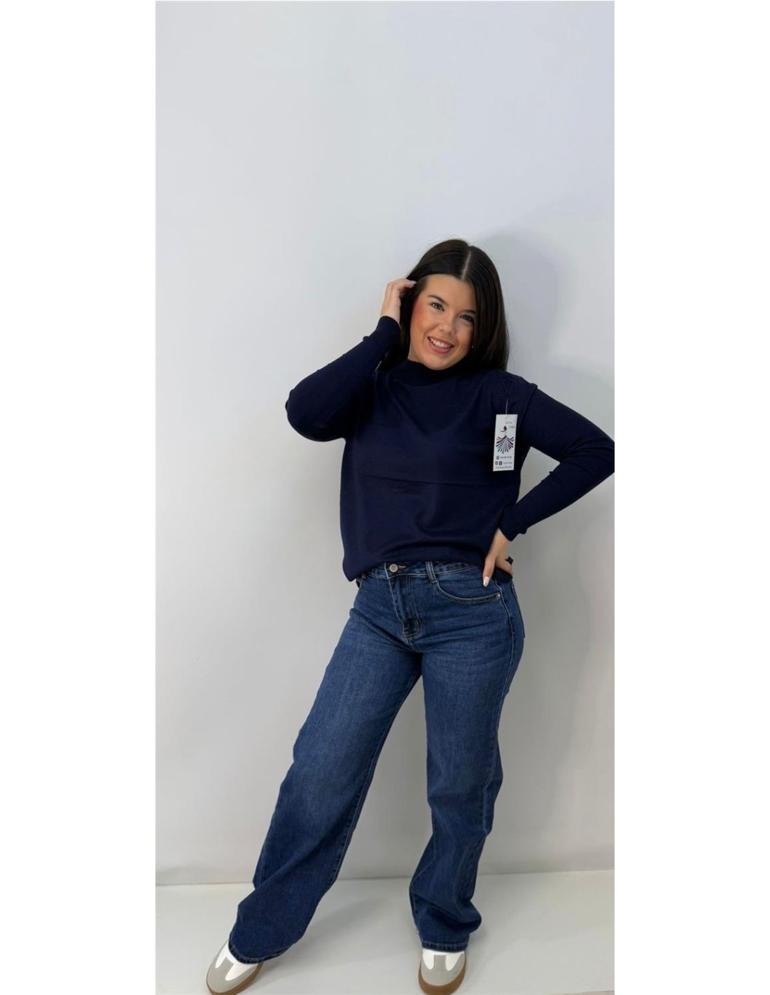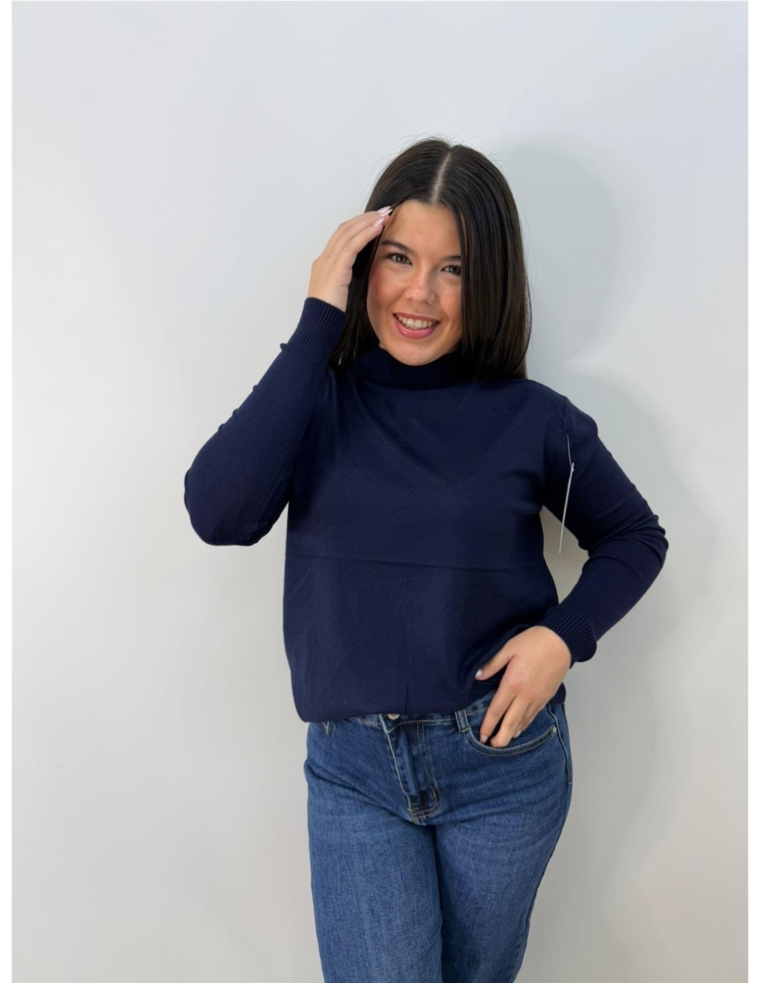 De punto, cuello semi sinney, mangas largas. Su talla va desde una 34 hasta una 44 aproximadamente.