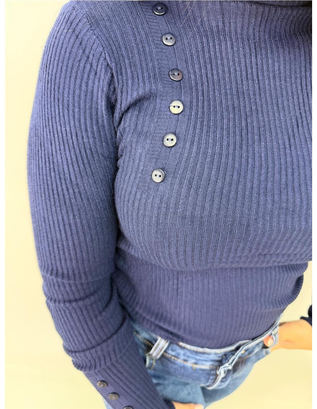 De canale, cuello alto, con botones en el lateral y en las mangas. Su talla va desde una 34 hasta una 40 aproximadamente.