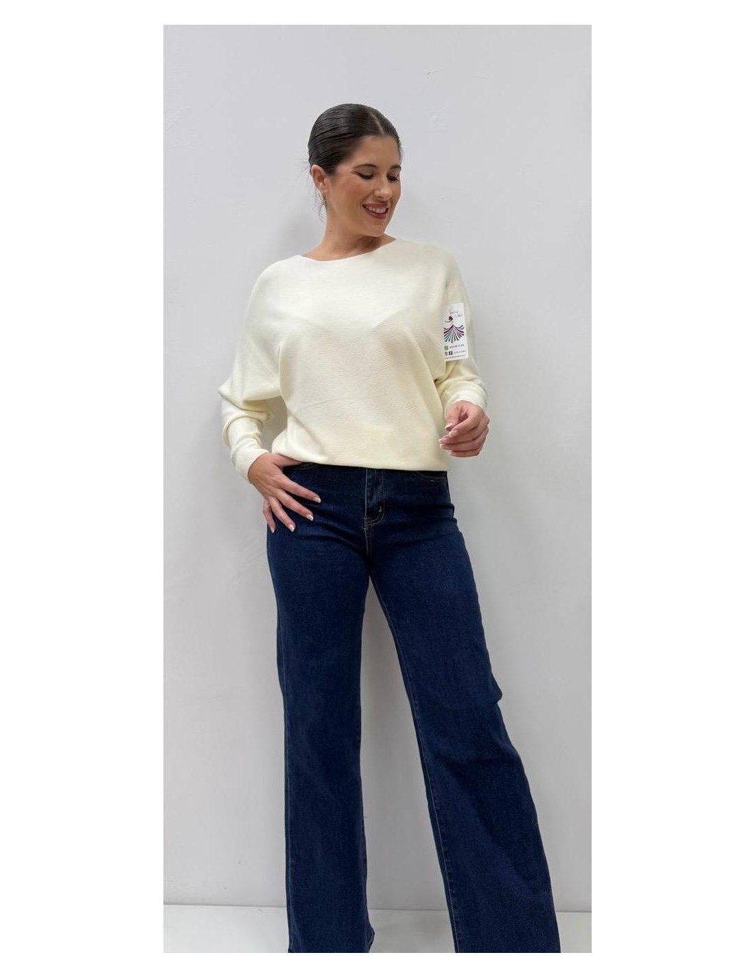 Jersey de algodon, manga larga. Su talla va desde una 36 hasta una 44 aproximadamente.