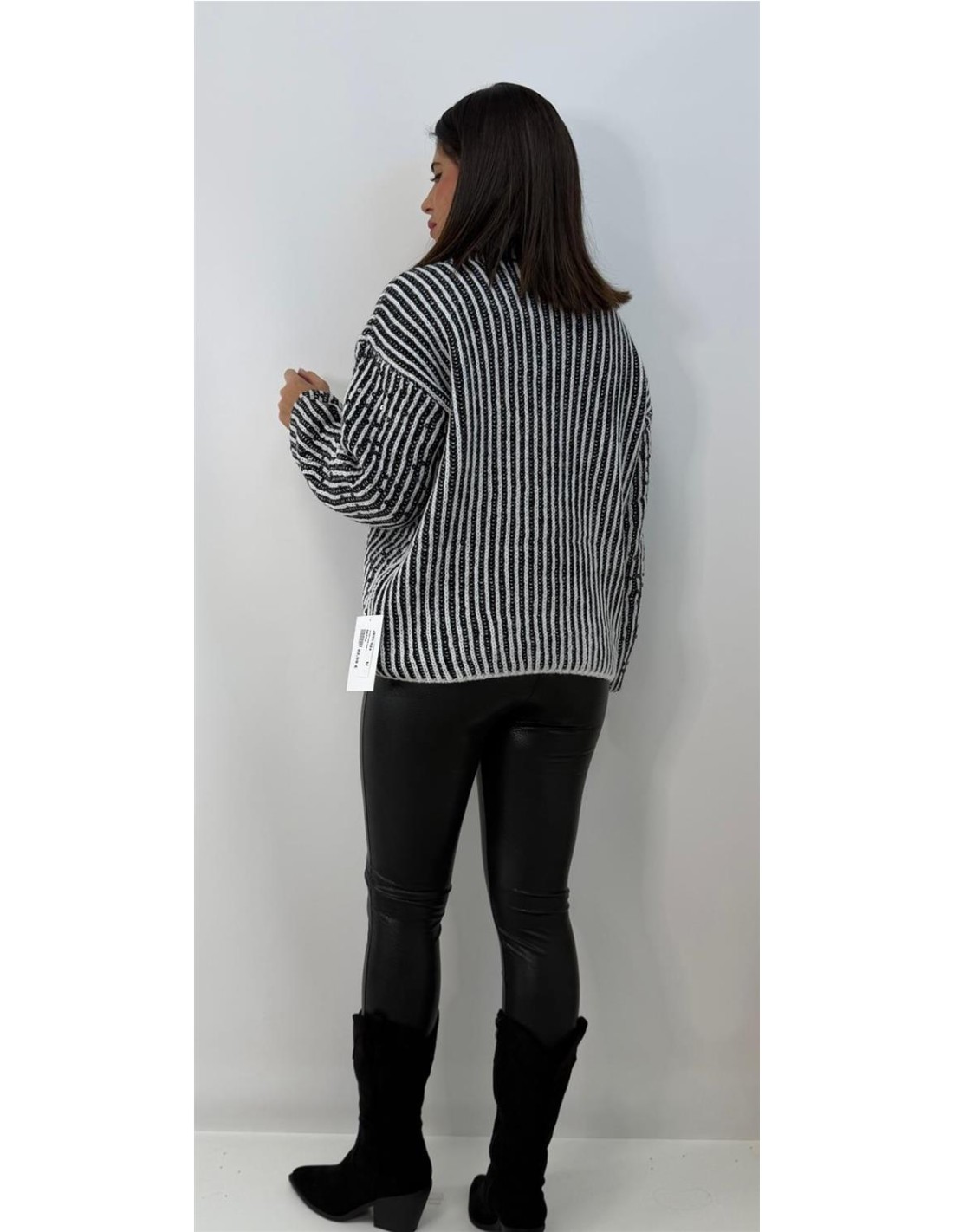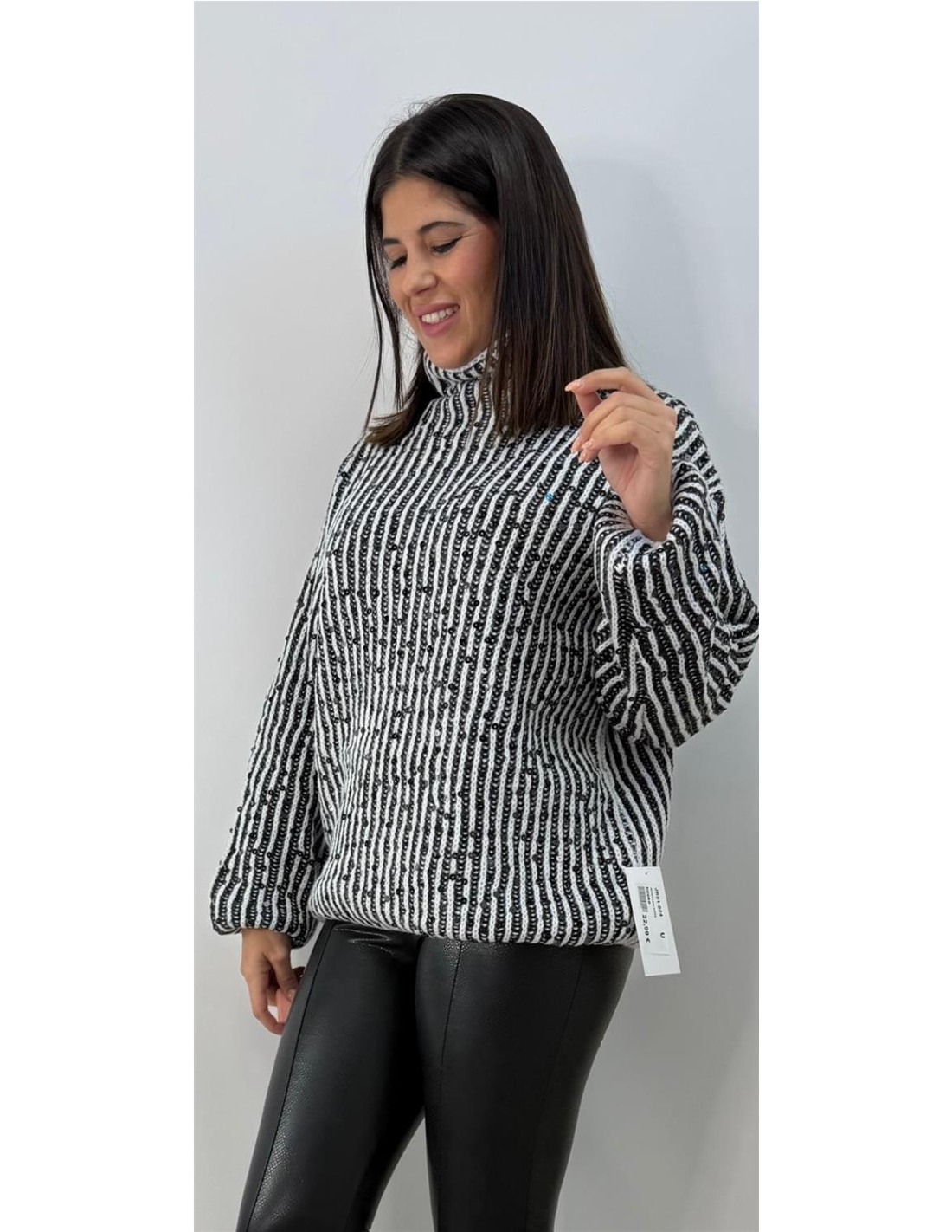 Jersey de lana, con alguna lentejuela de cuello alto basico. Talla unica 34 a 42 aprox